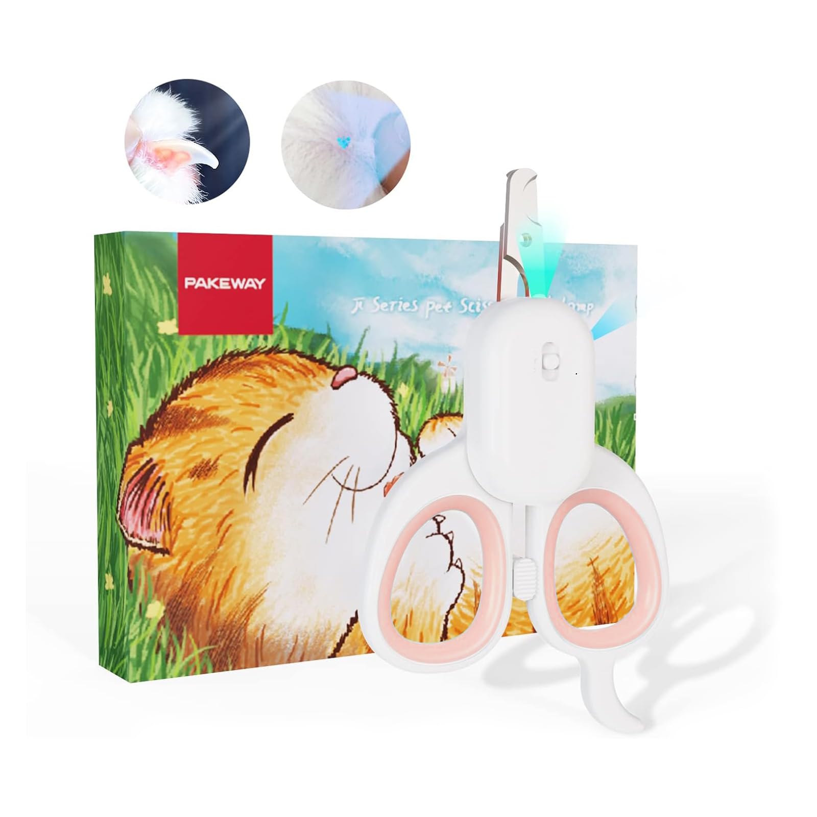 PAKEWAY Pet Nail Clipper with LED & -U-V Light, Cat Claw Trimmer with Ultra Bright LED Light for Nail Bloodline to Avoid Over Cutting, Sharp Angled Blade Grooming Tool for Dog Cat Rabbit Small Animals