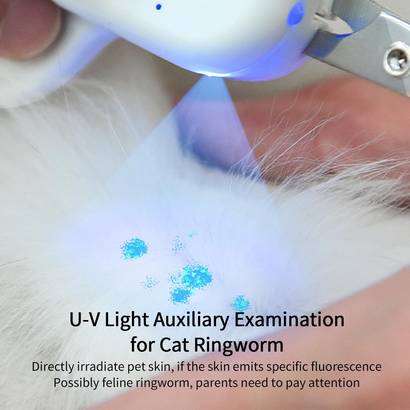 - Ringworm Detection: Our cat claw trimmer is also equipped with U-V lamp beads. Pet skin problems such as ringworm in cats or dogs can be detected under purple light. It is a reliable helper for your pet's health!