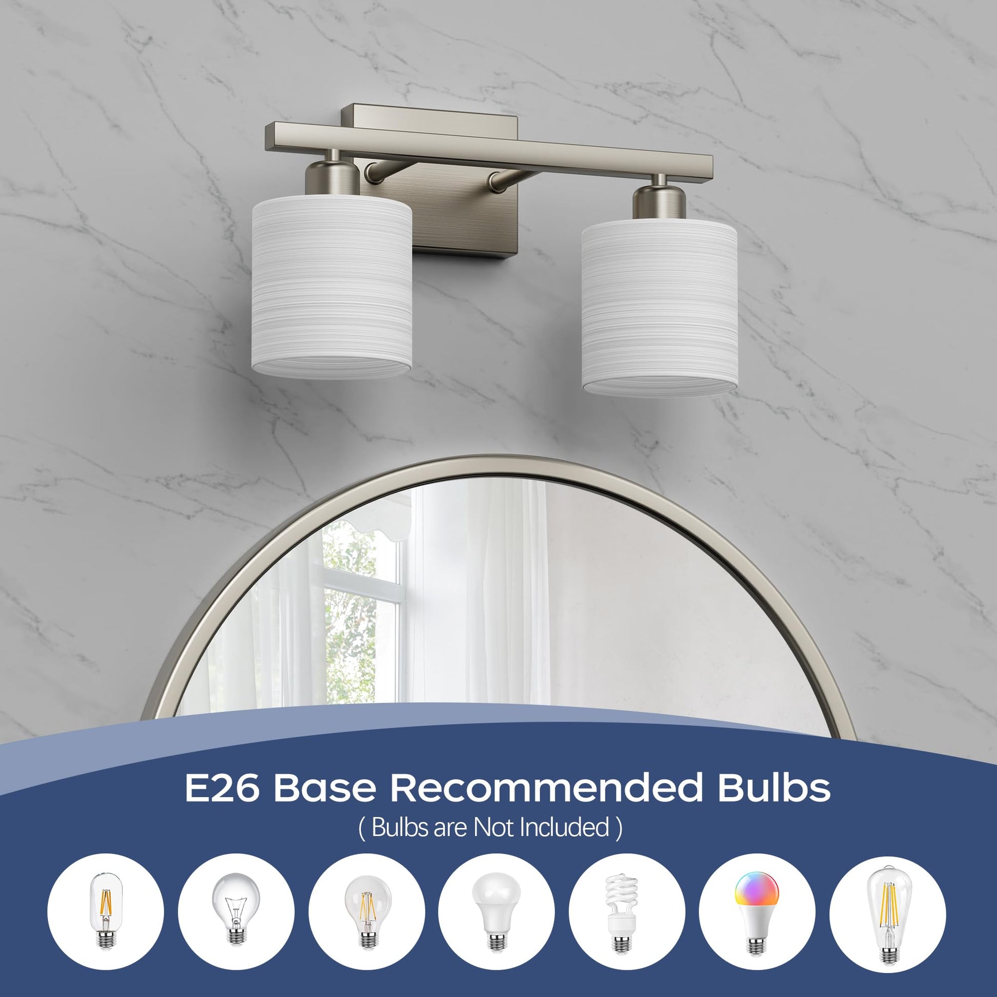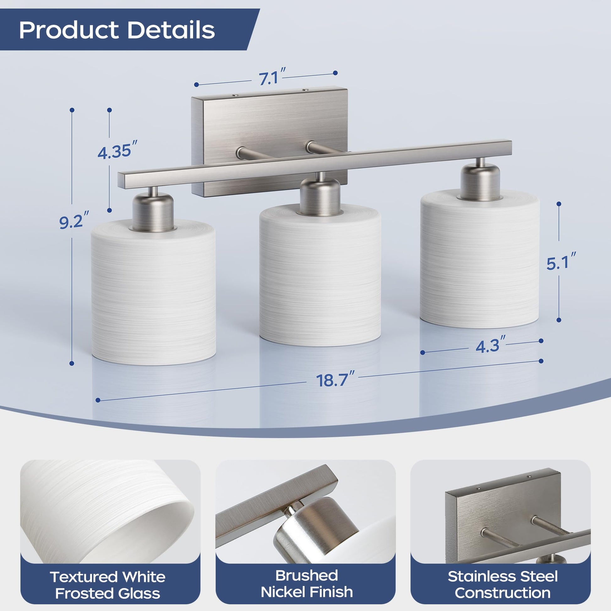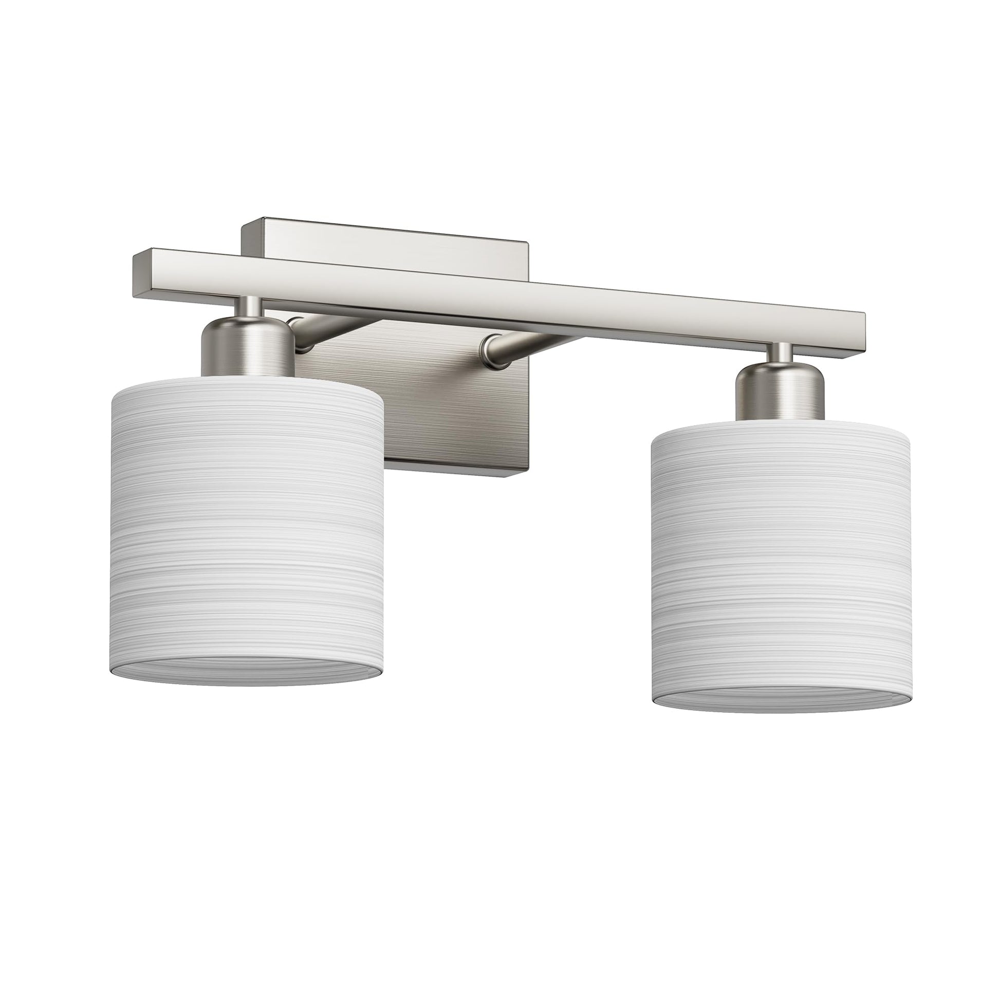 - Modern lighting design: mingle function design with sophisticated style with PARTPHONER bath vanity light. Featuring a stylish brushed nickel finish and textured white cylindrical glass shades, this bath lighting collection adds a pleasing touch of elegance to your home. Ideal for any bathroom in coastal, luxury, modern, and transitional settings