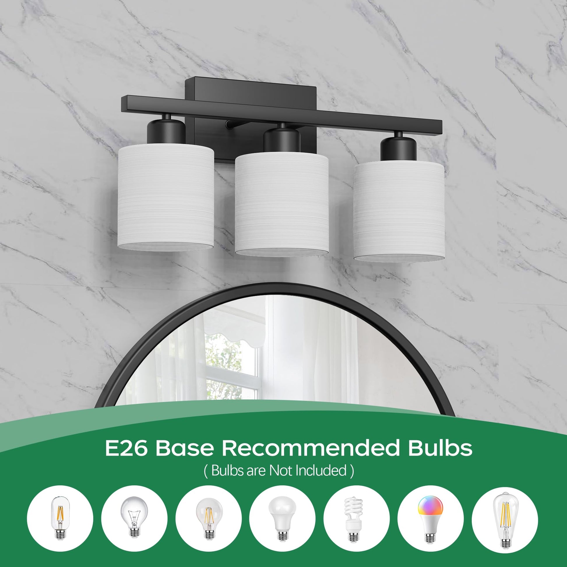 - Bulb requirements: 3 X E26 base bulbs required, Max 60W, compatible with LED, incandescent, or CFL bulbs. Please note that the bulbs are not included. PARTPHONER offers sturdy products at affordable prices and professional after-sales support. Any problems, please contact us for a solution, we will help within 24 hours