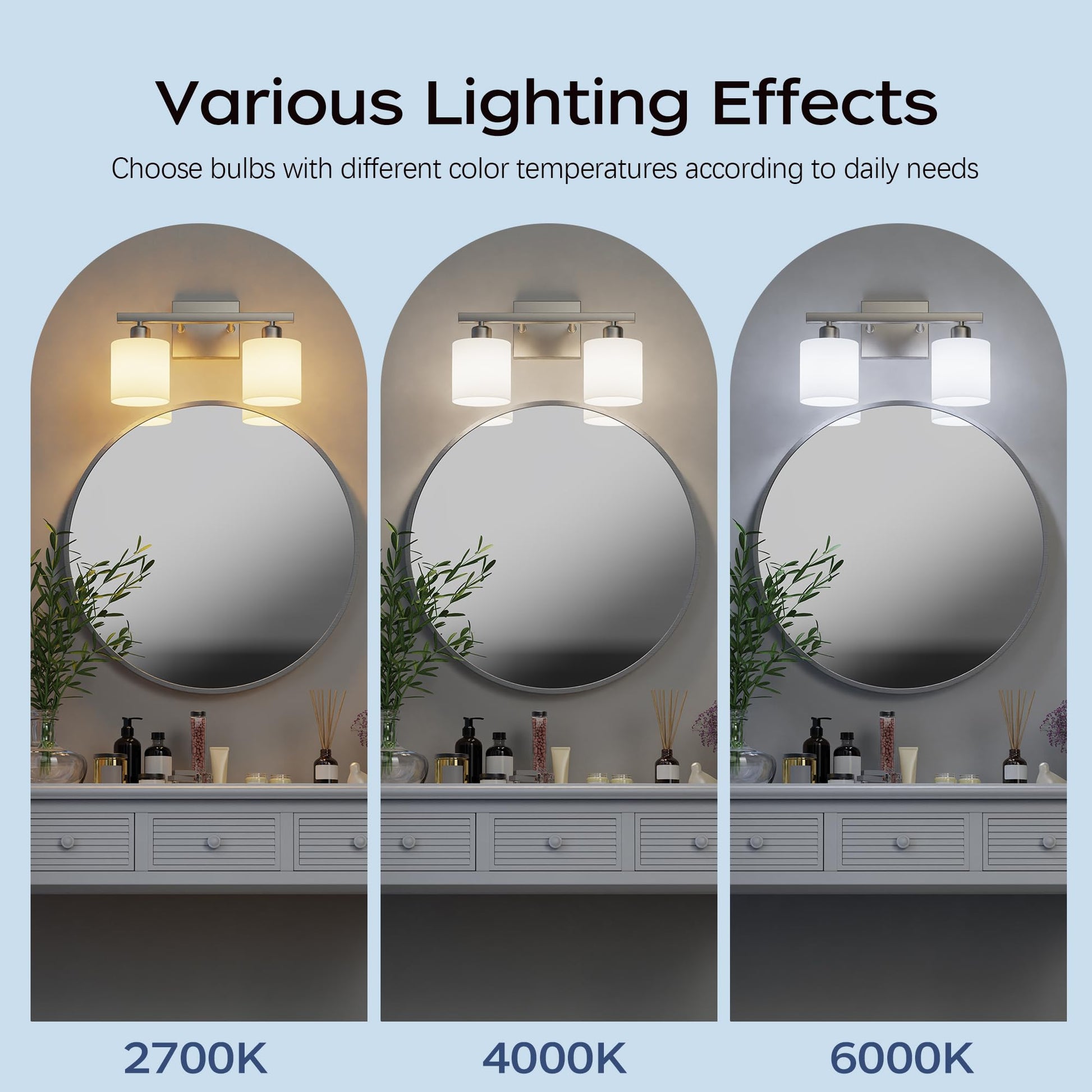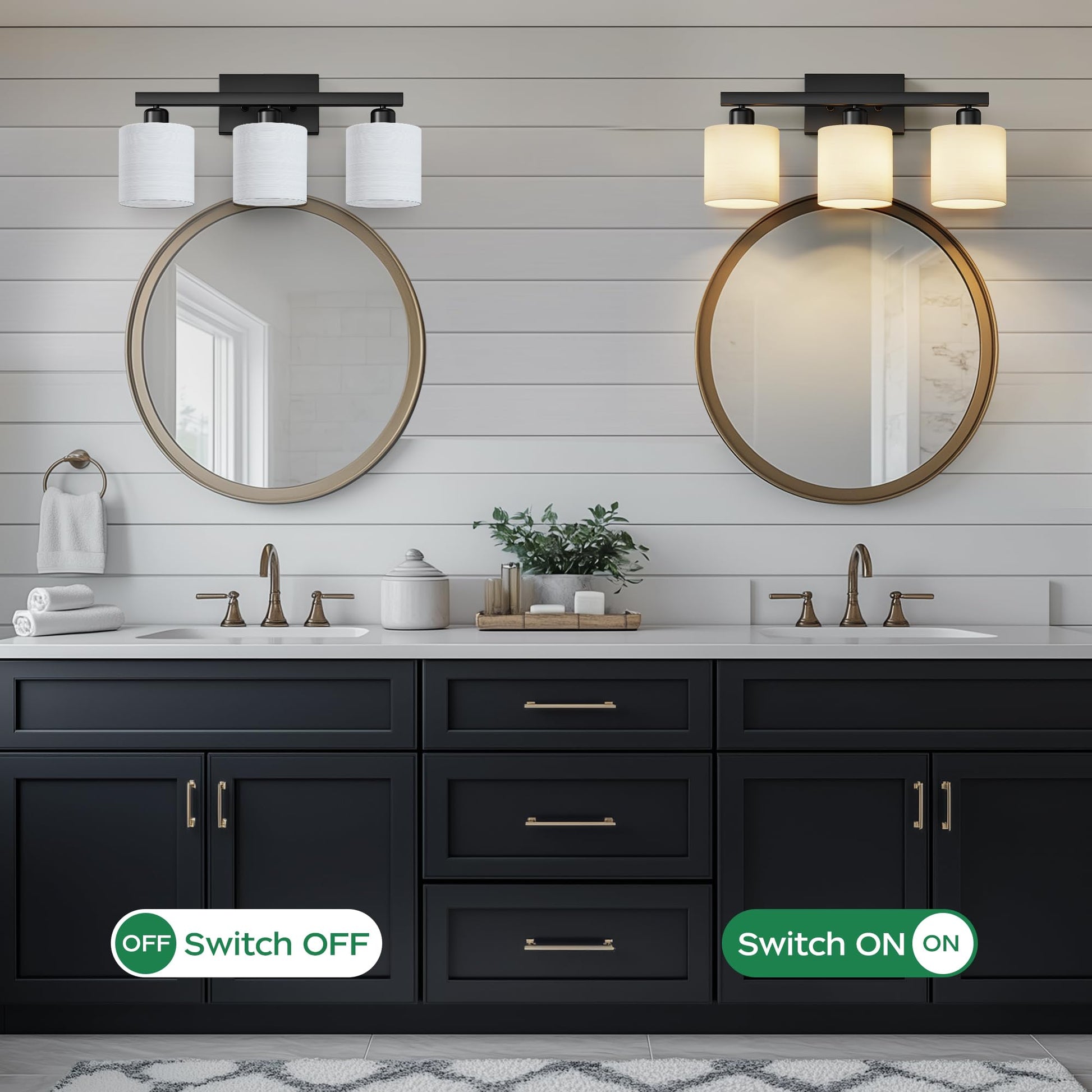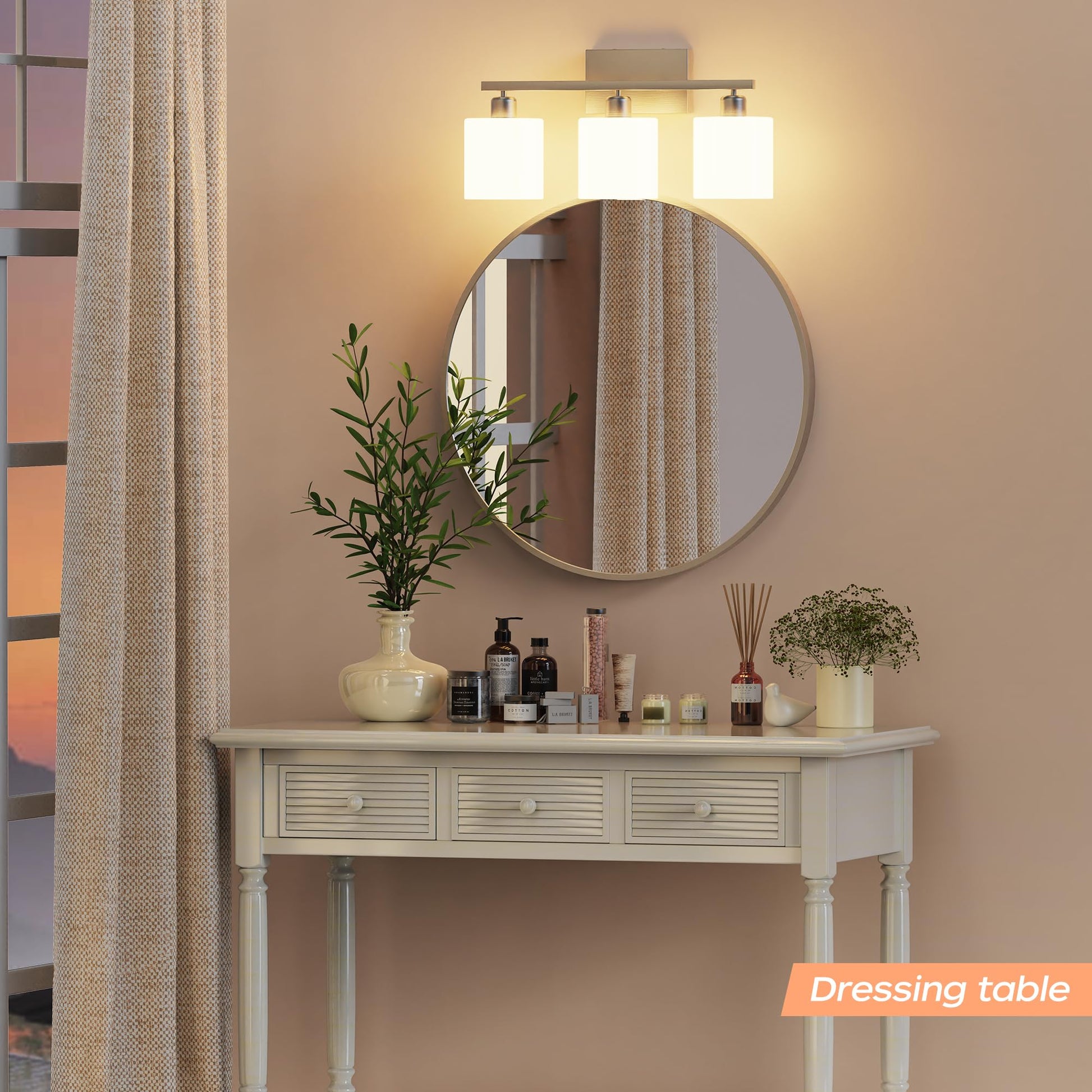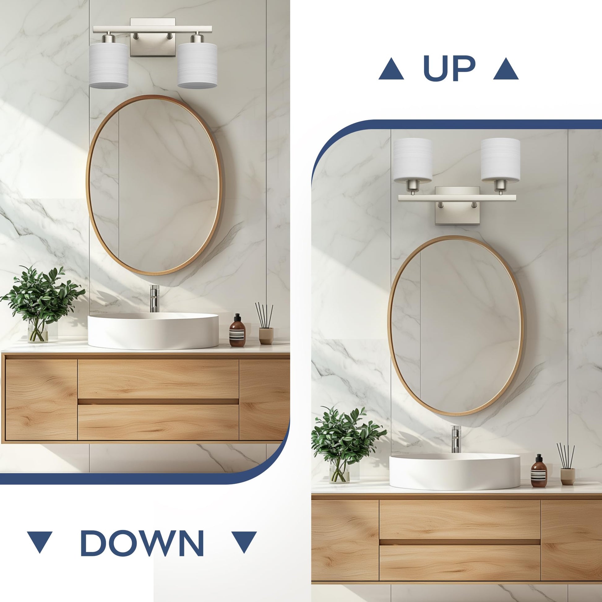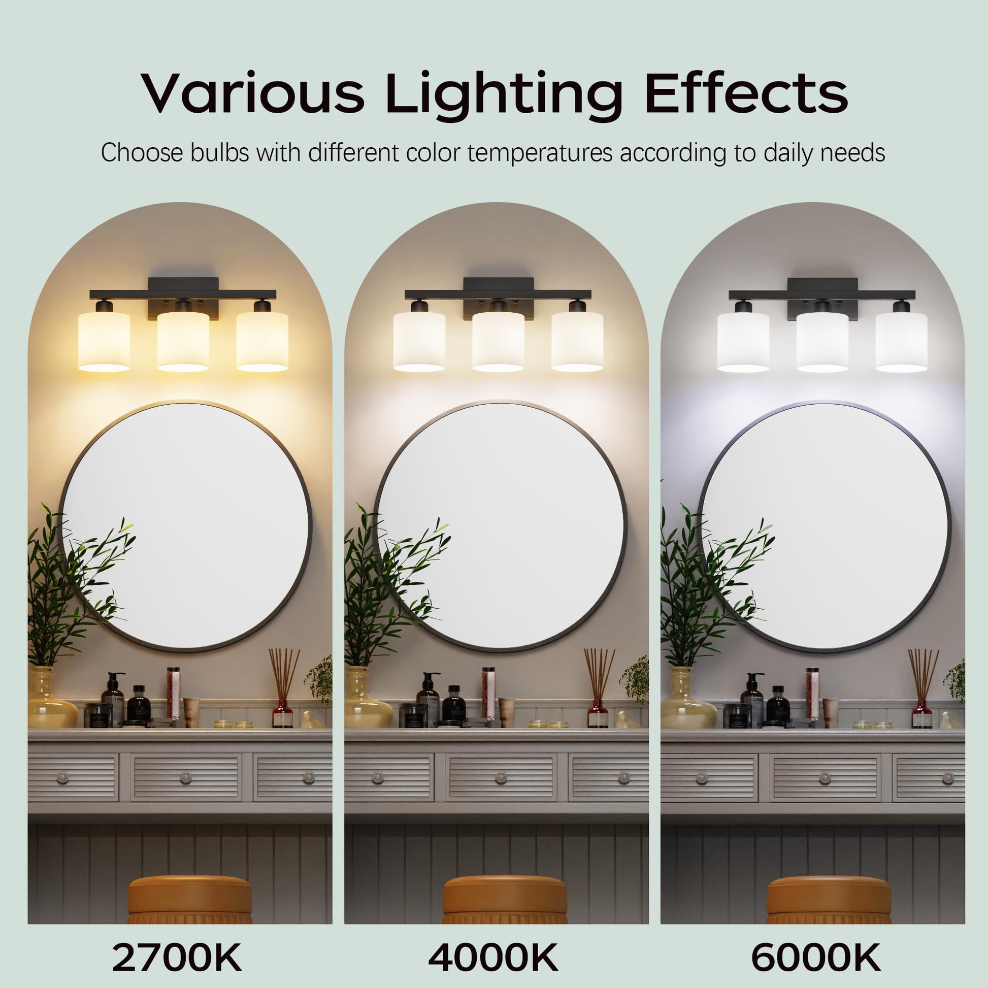 - Easy to install: this bathroom vanity light comes with all mounting hardware for quick and simple installation. The 3-light vanity light can be mounted up or down to light up every corner of your room. It will look gorgeous above a sink, bathroom mirror, vanity table, or on your balcony