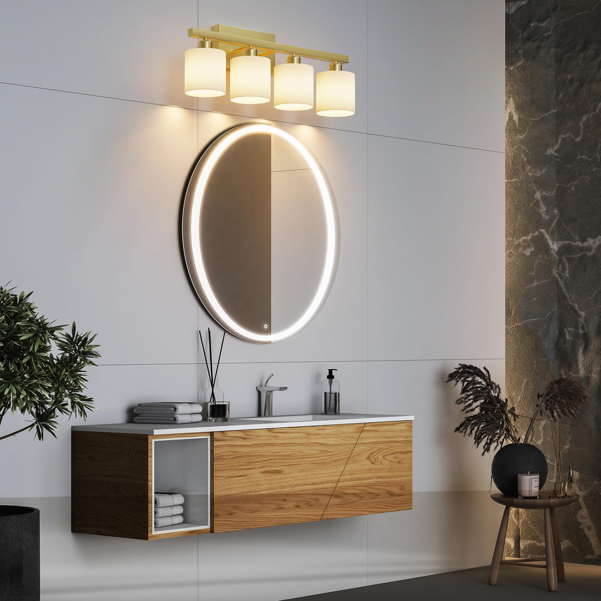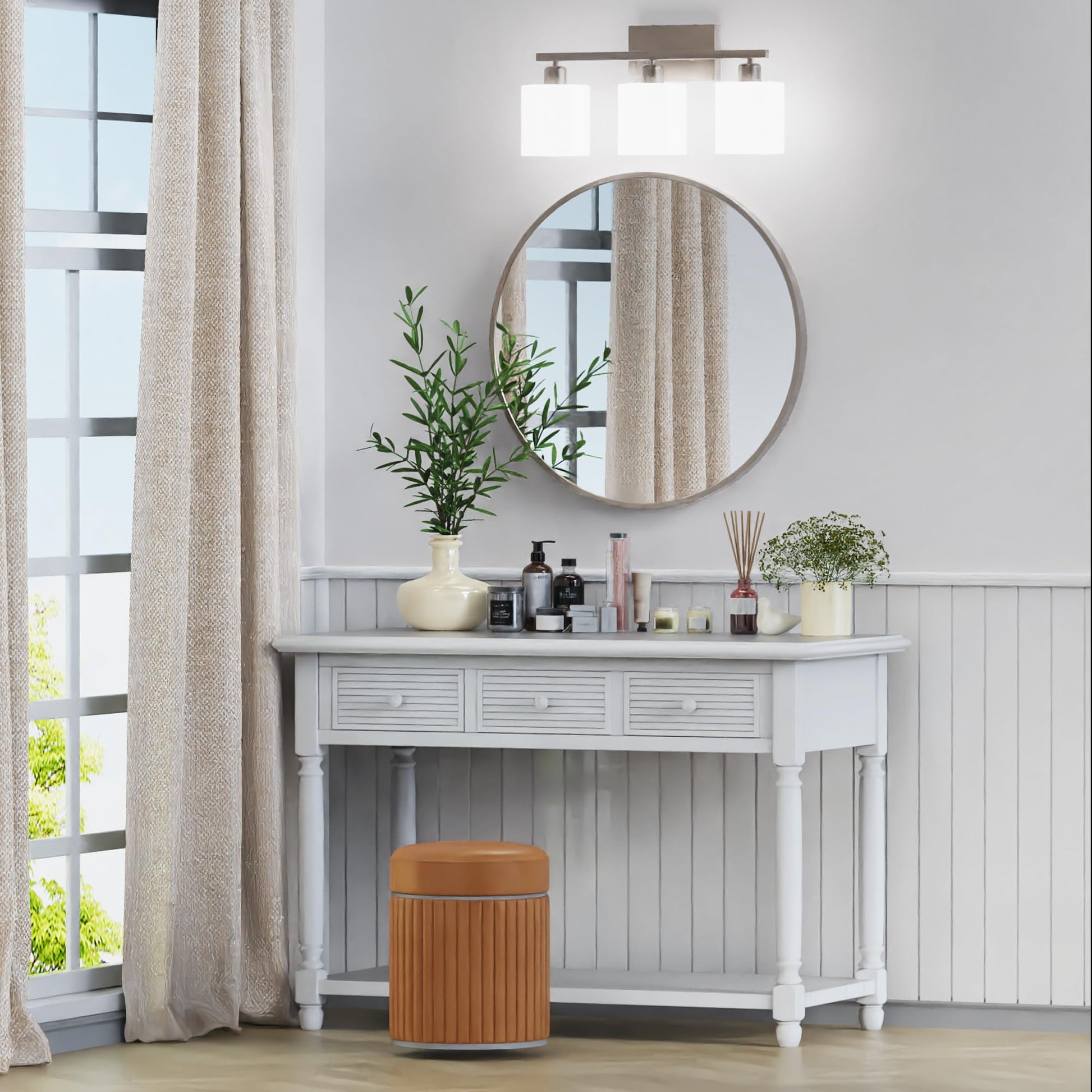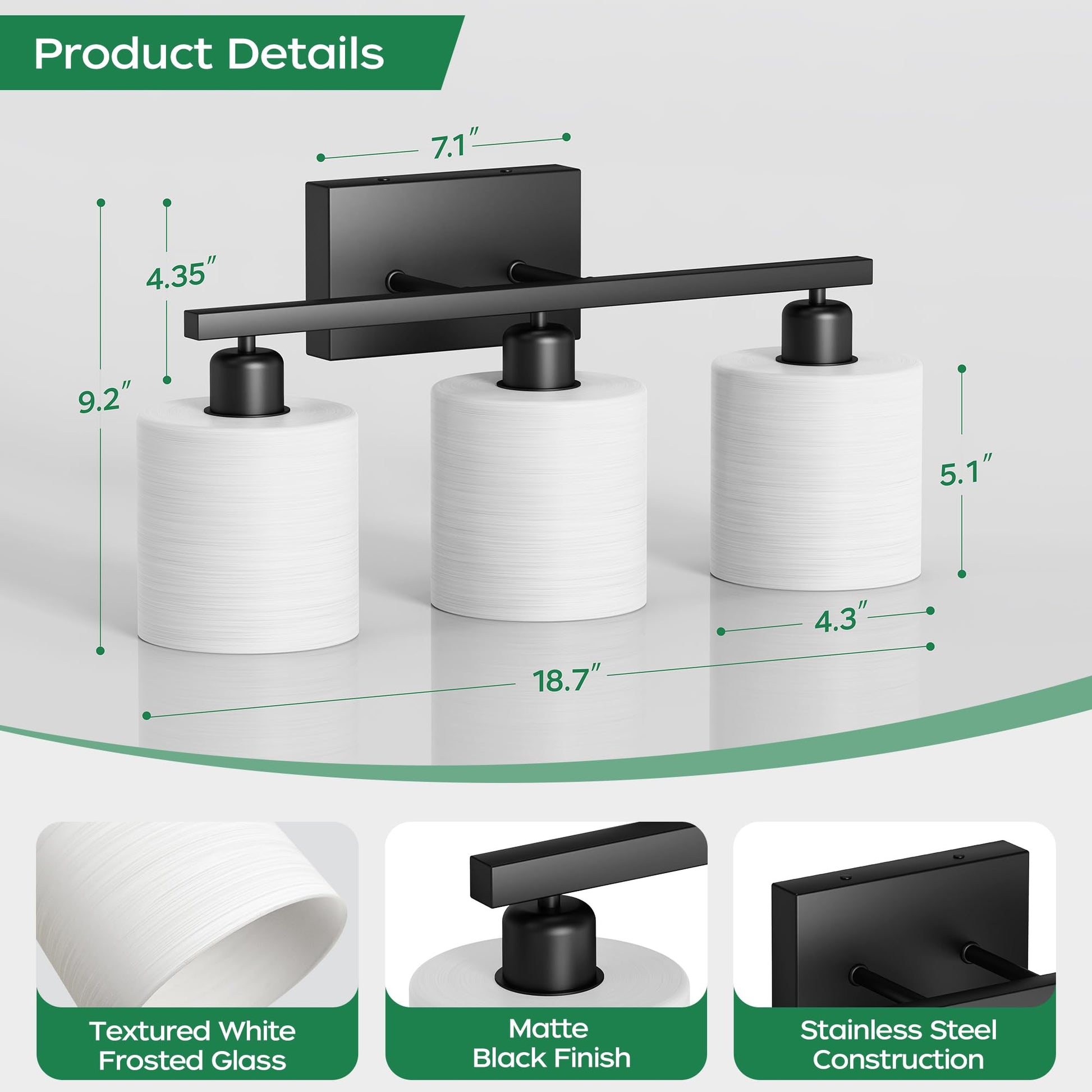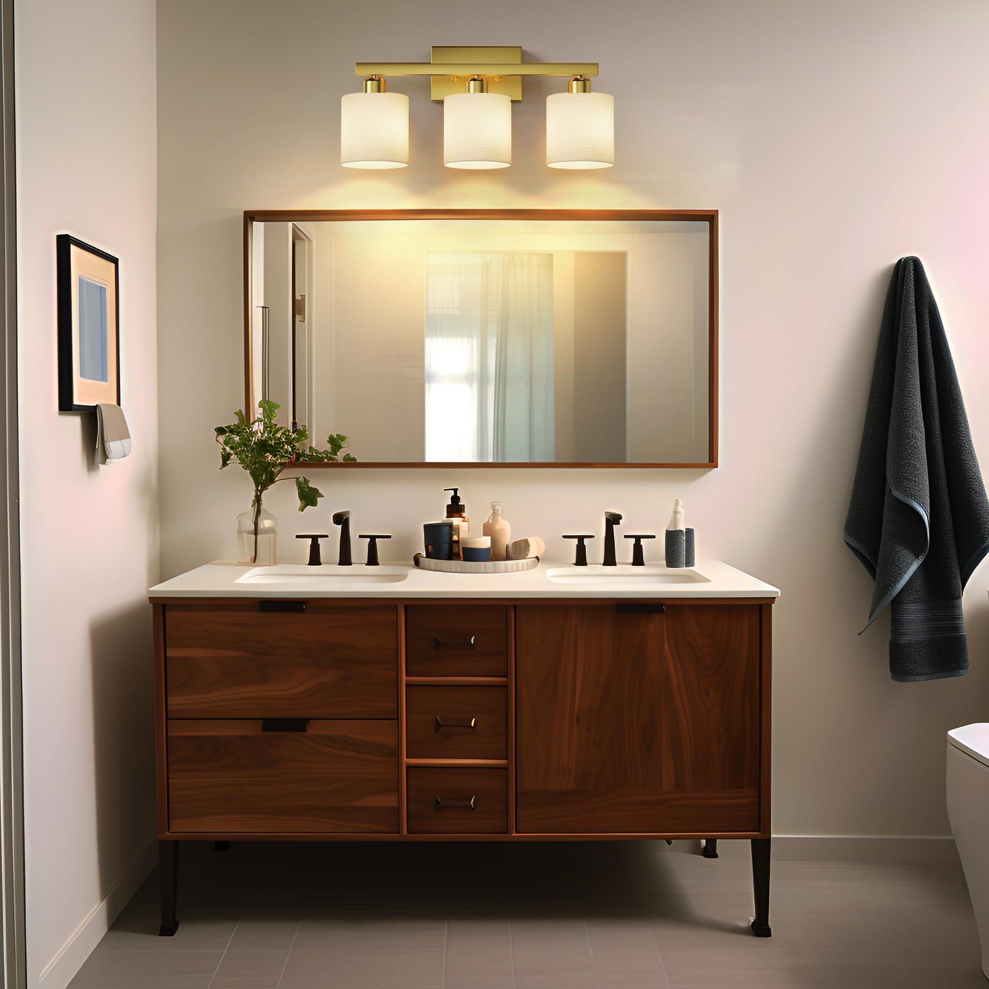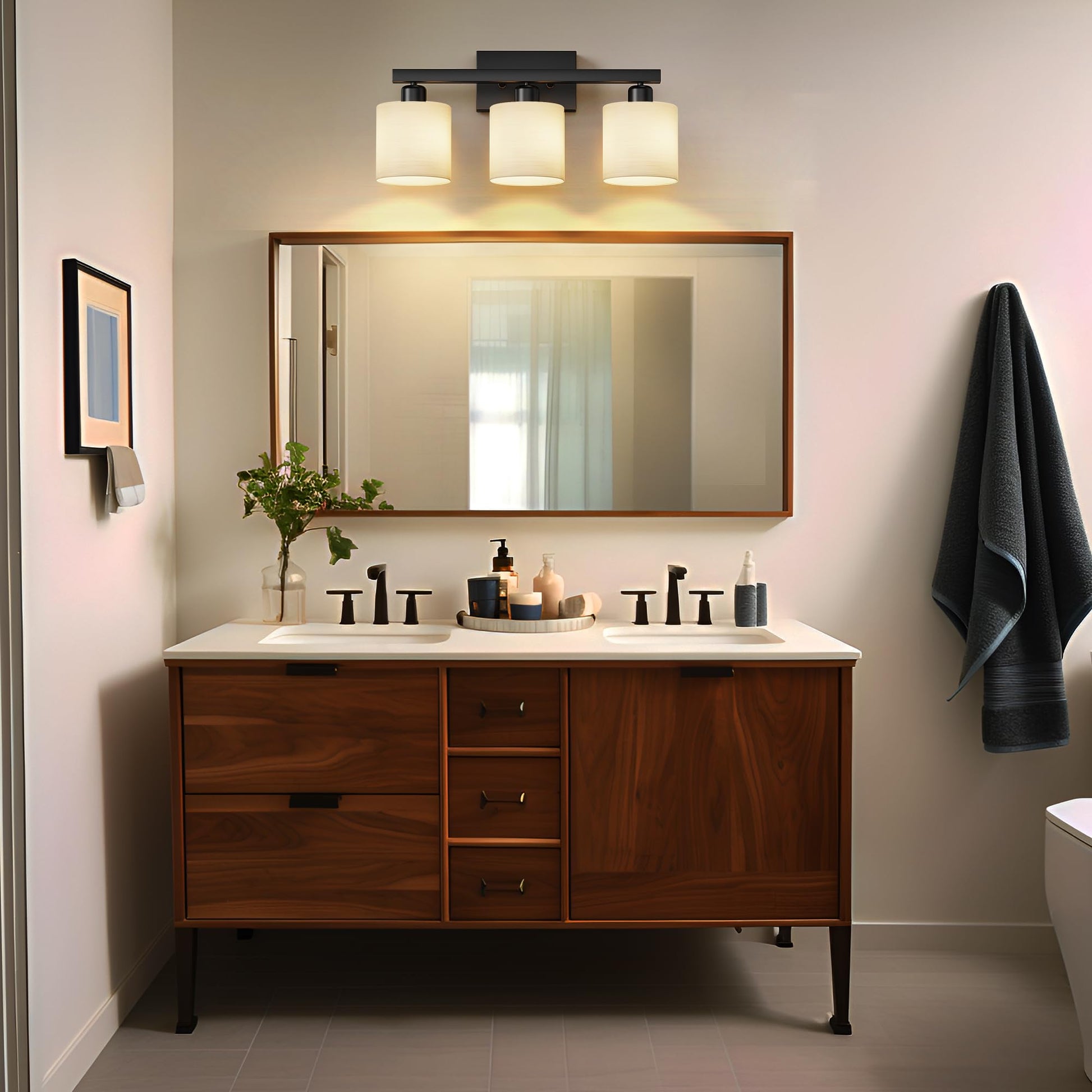 - Easy to install: this bathroom vanity light comes with all mounting hardware for quick and simple installation. The 3-light vanity light can be mounted up or down to light up every corner of your room. It will look gorgeous above a sink, bathroom mirror, vanity table, or on your balcony