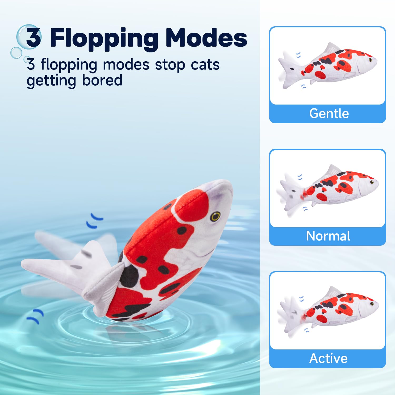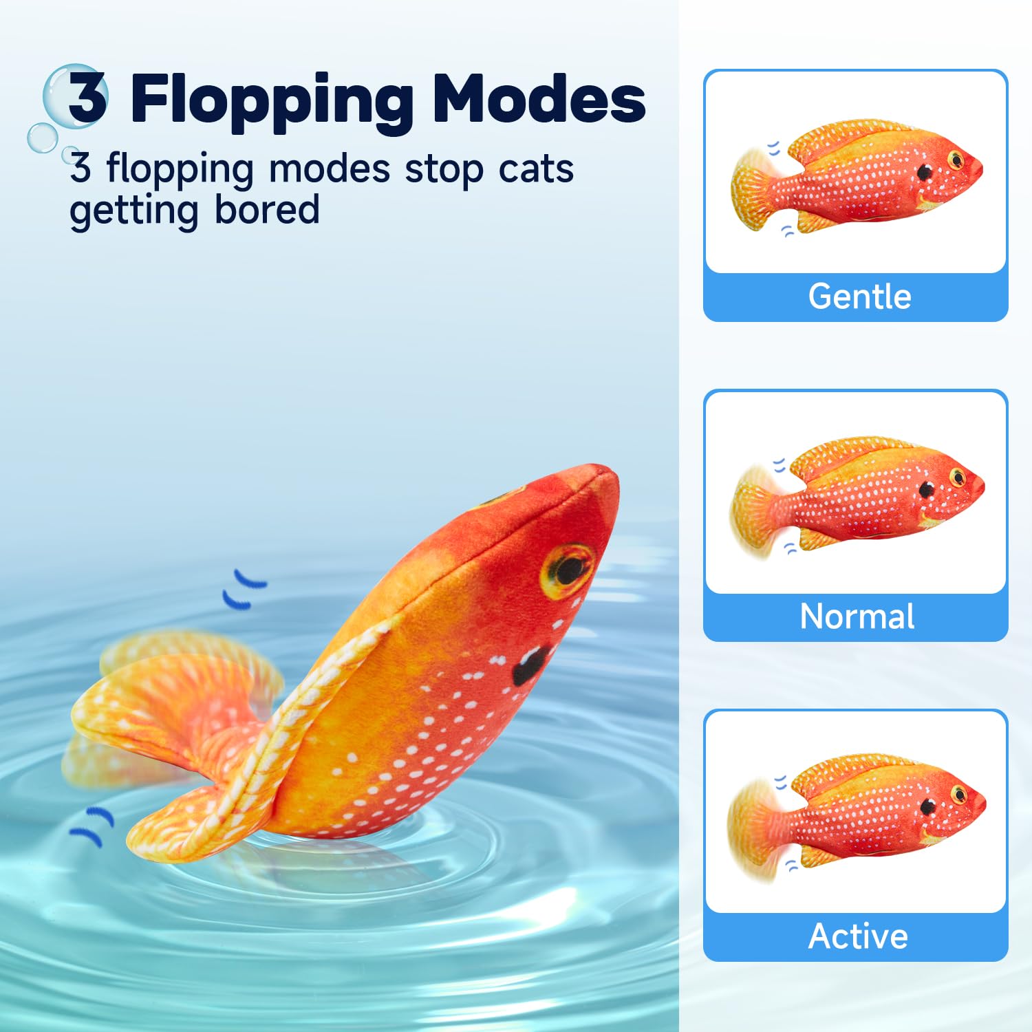 - Upgraded: we increased the battery capacity to 350 mAh so that each charge lasts longer. And we improved the joint part of the mechanism to extend the lifetime of the small animal toy. Additionally, this fish toy comes with exquisite gift packaging, making it a fab christmas new year holiday gift for pet owners or your own pets