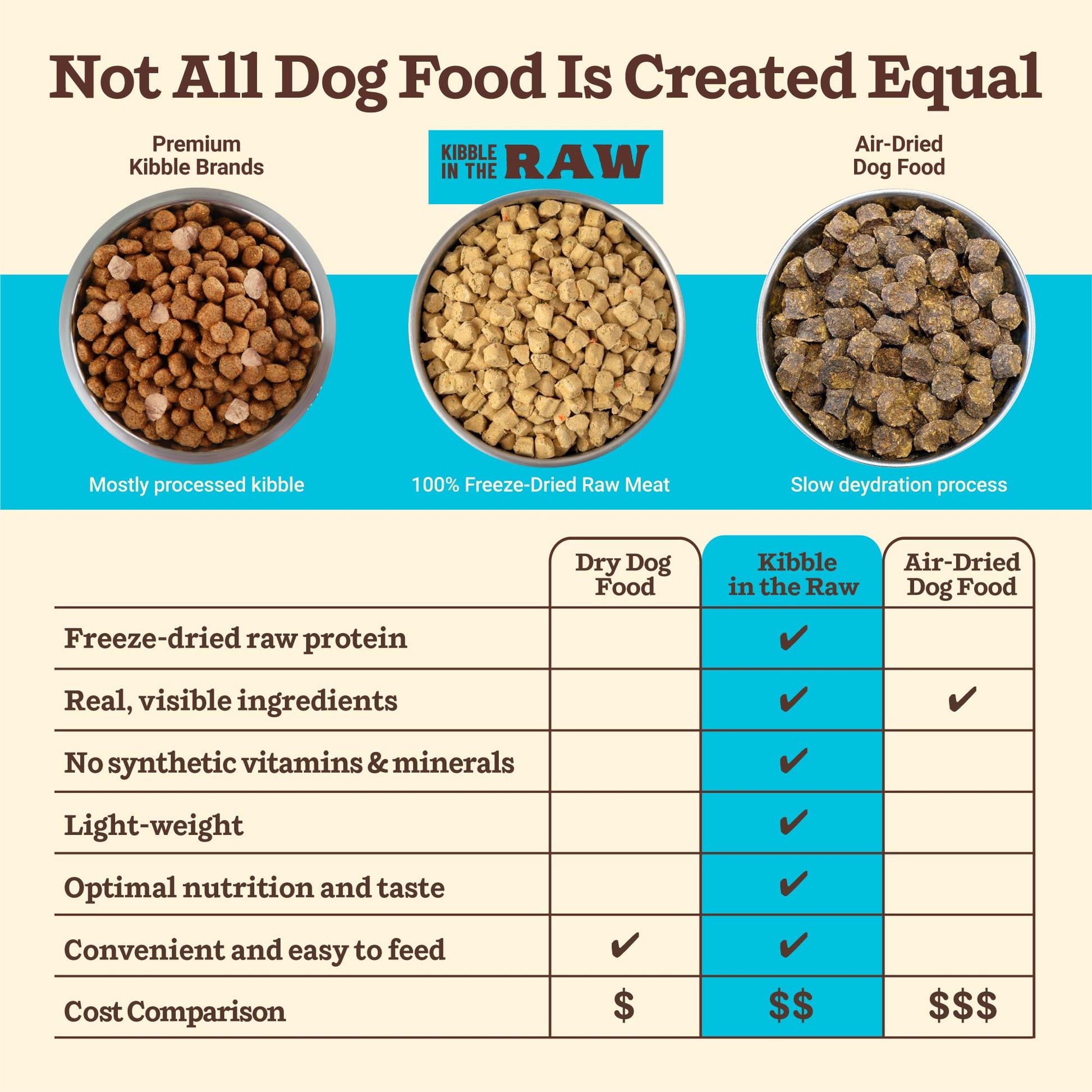 - FREEZE DRIED RAW MEAT: Kibble in the Raw locks in the nutrients and flavor of raw meat through our freeze-dried process. Unlike traditional kibble, it delivers optimized nutrition and digestibility without high-heat cooking and overprocessing.