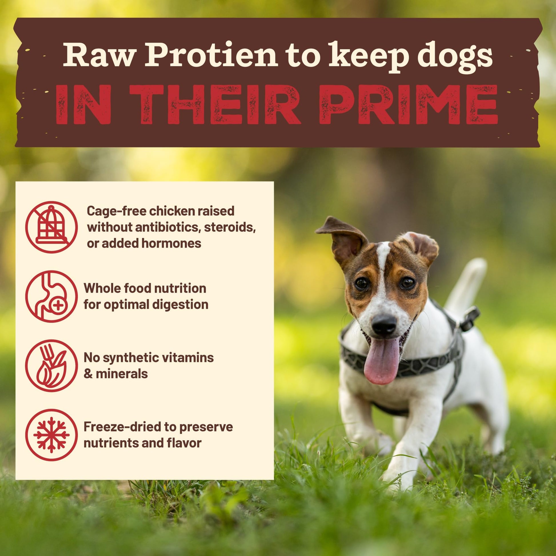 - PUPPY RECIPE: Made with 100% freeze dried raw protein from cage-free chicken and crate-free pork, this recipe fuels healthy growth, muscle development, and boundless puppy energy. Packed with flavor, it’s a meal your pup will love with every bite!