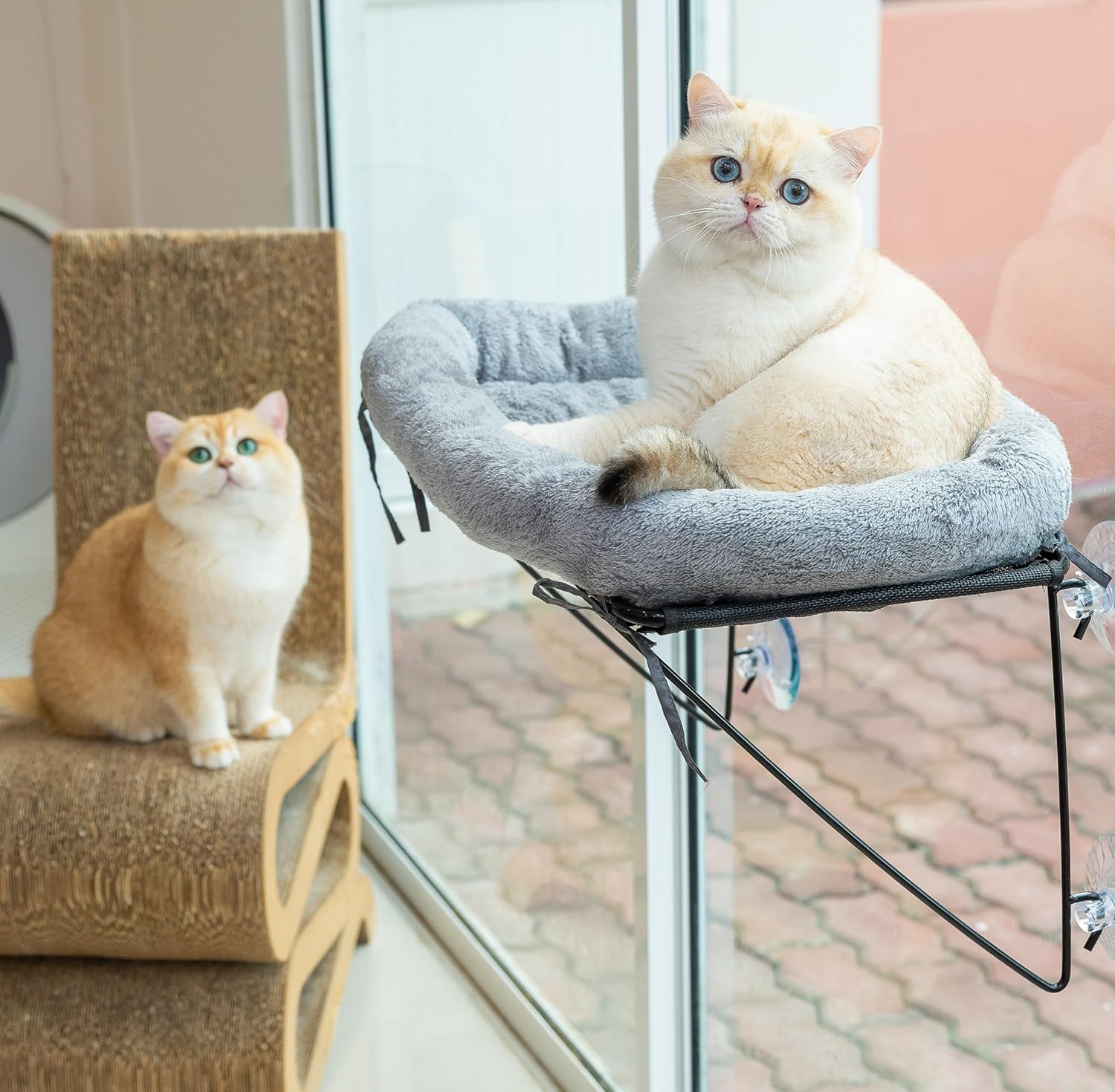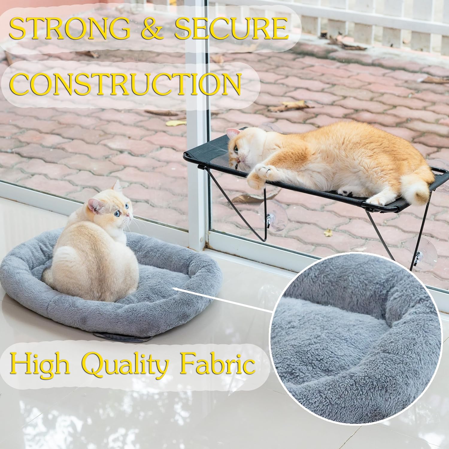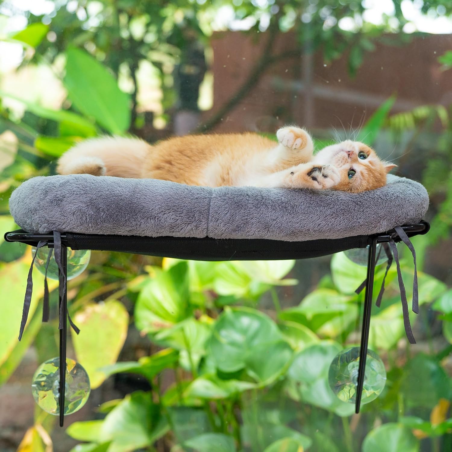 - 🐱👤Easy to Assemble, Remove & Clean – This cat window perch comes with simple, tool-free assembly. Just connect the sturdy steel frame and bedding base, secure it to your chosen window with the strong suction cups, and place the soft cotton bedding on top. Let your cat enjoy their cozy new perch and the outdoor scenery. When it’s time to clean, simply machine wash the cotton bedding for effortless maintenance.