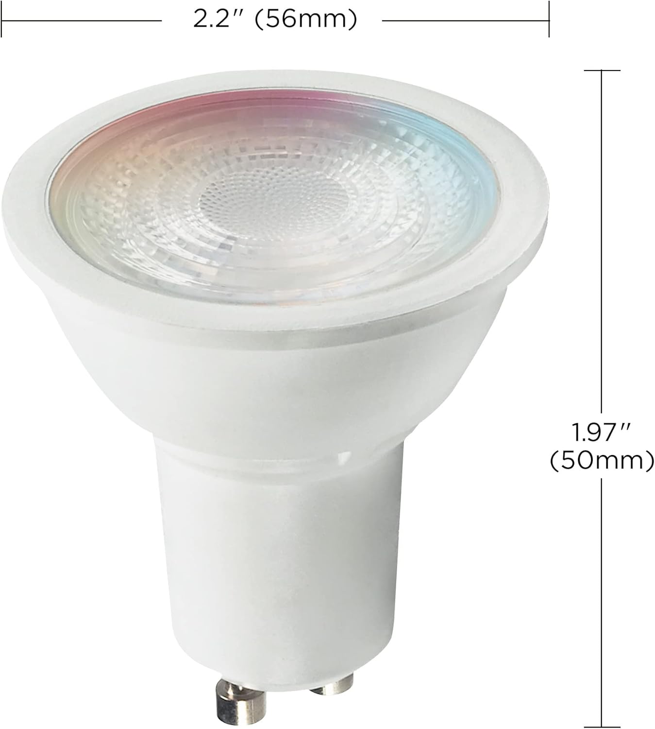 The 5.5W LED MR16 Color Changing and Tunable White Mini Reflector lamp for recessed and track fixtures are the perfect choice for accenting your home's decor and architectural features, adding color and dimension. This 2.4 GHz WiFi smart bulb can be controlled via the downloadable Starfish app to dim the lights, adjust lighting schedules, and set routines, all from the convenience of your mobile device or by using voice control with Siri, Alexa, Google Assistant, and SmartThings. For added versatility, the 80 CRI color- and white-tunable light bulb provides dynamic color-changing light with endless variations of warm to cool white light that ranges between 2700-5000K, adding intrigue to your home lighting. The 5.5 Watt MR16 LED bulb with GU10 base delivers 400 Lumens of brightness, is rated for 25,000 hours, and is ENERGY STAR certified, cULus Listed, Damp Location Listed, Enclosed Fixture Rated, RoHS Compliant, and FCC Listed for safety.