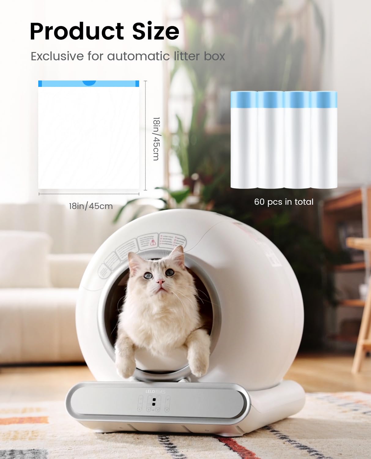 - 【WHAT'S IN THE BOX】 Cats are cherished companions in the family. We are committed to providing every feline friend with a high-quality and durable litter box. You will receive: ① Self-Cleaning Cat Litter Box *1, ② Power Adapter *1, ③ Mat *1, ④ Waste Bag Rolls *3, ⑤ User Manual *1, ⑥ User Guide *1, ⑦ Cat Litter Selection Guide *1. LELO ELVES provides a 12-month brand service. If you encounter any issues during use, our customer support is available 24/7 to assist you.