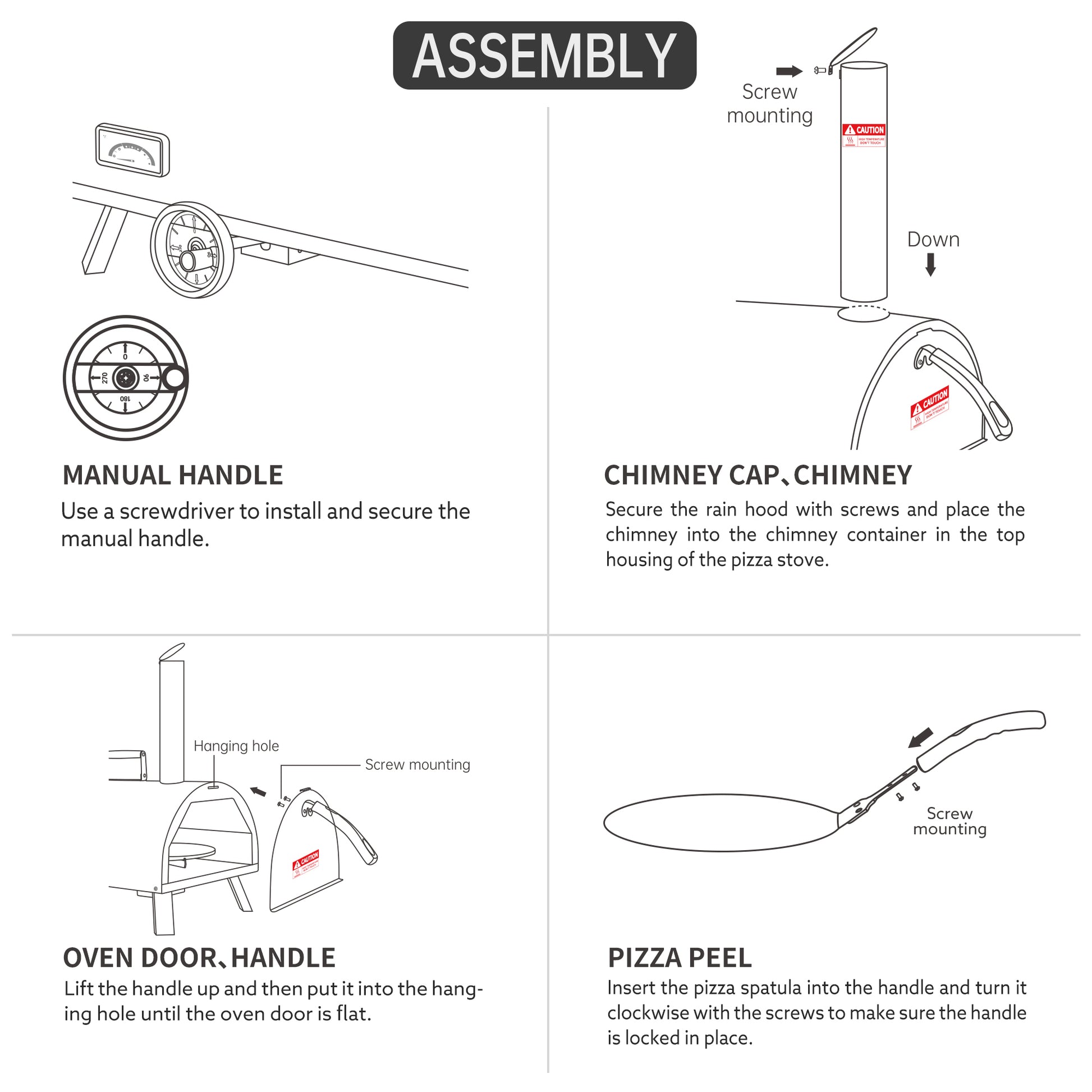 Temperature gauge: Equipped with a temperature gauge, the pizza oven allows you to monitor the internal temperature, ensuring the ideal cooking temperature for crispy crust and melted cheese.
