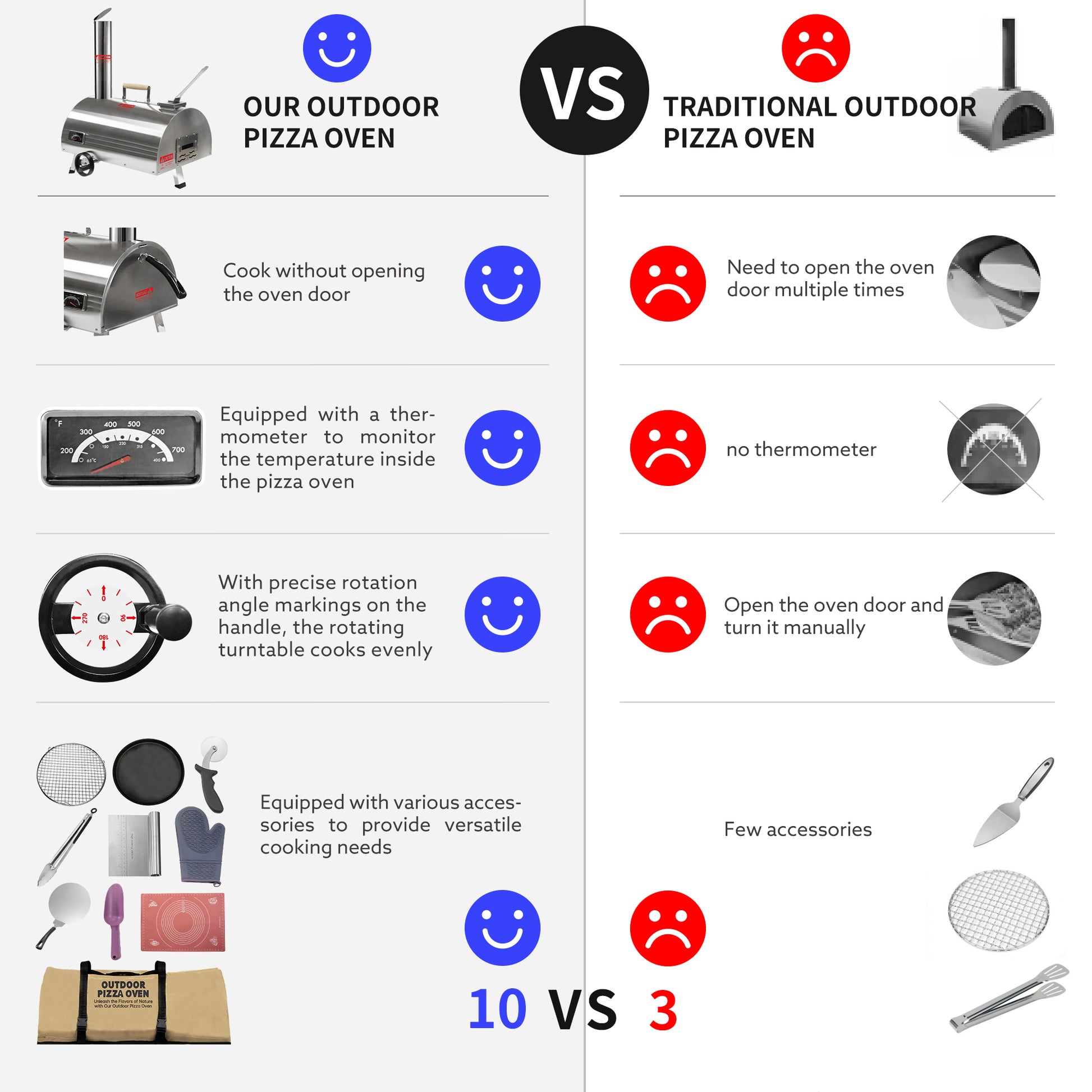 Durable construction: The outdoor pizza oven is built with high-quality materials, ensuring its durability and longevity. It can withstand outdoor elements and frequent use, making it a reliable investment.