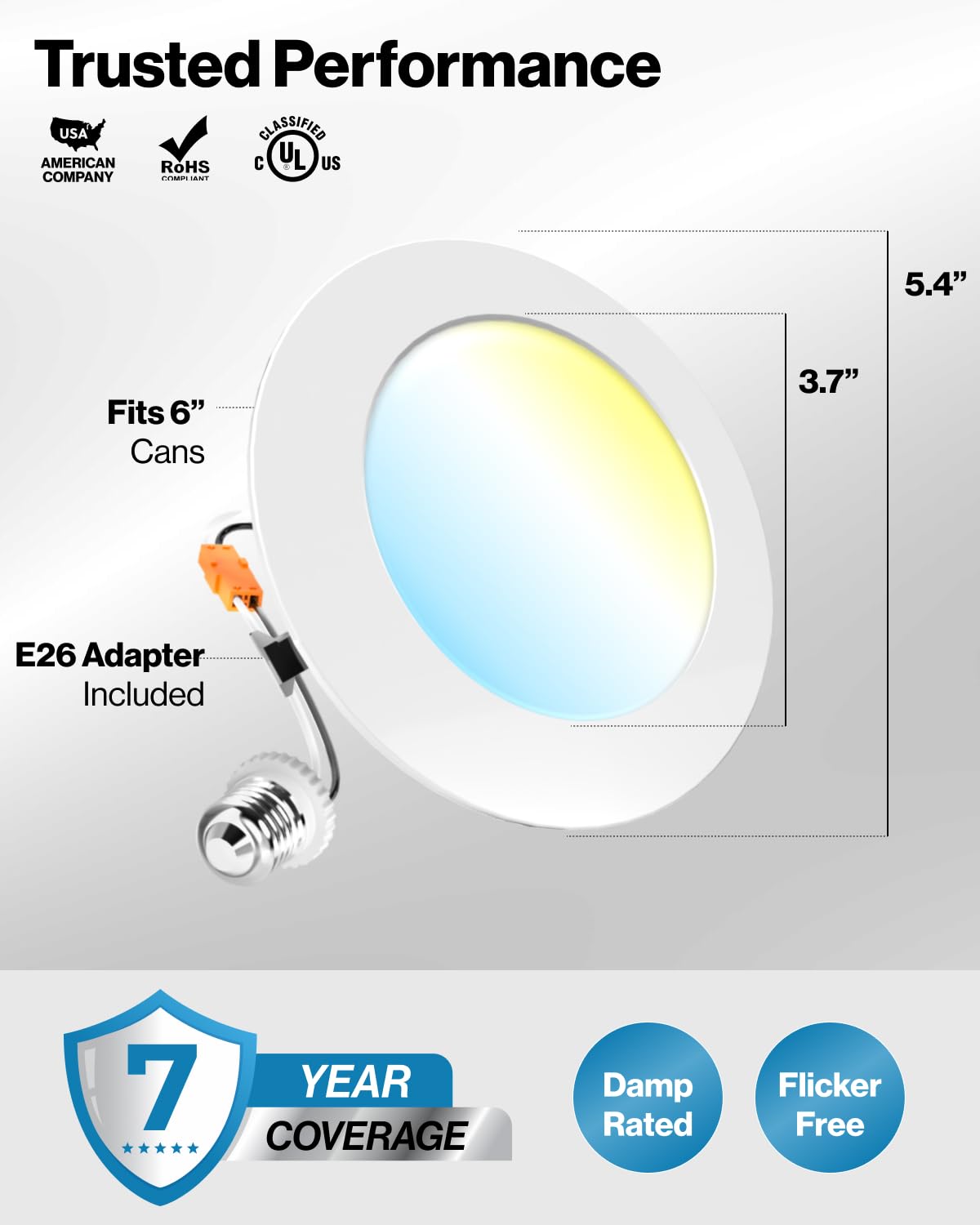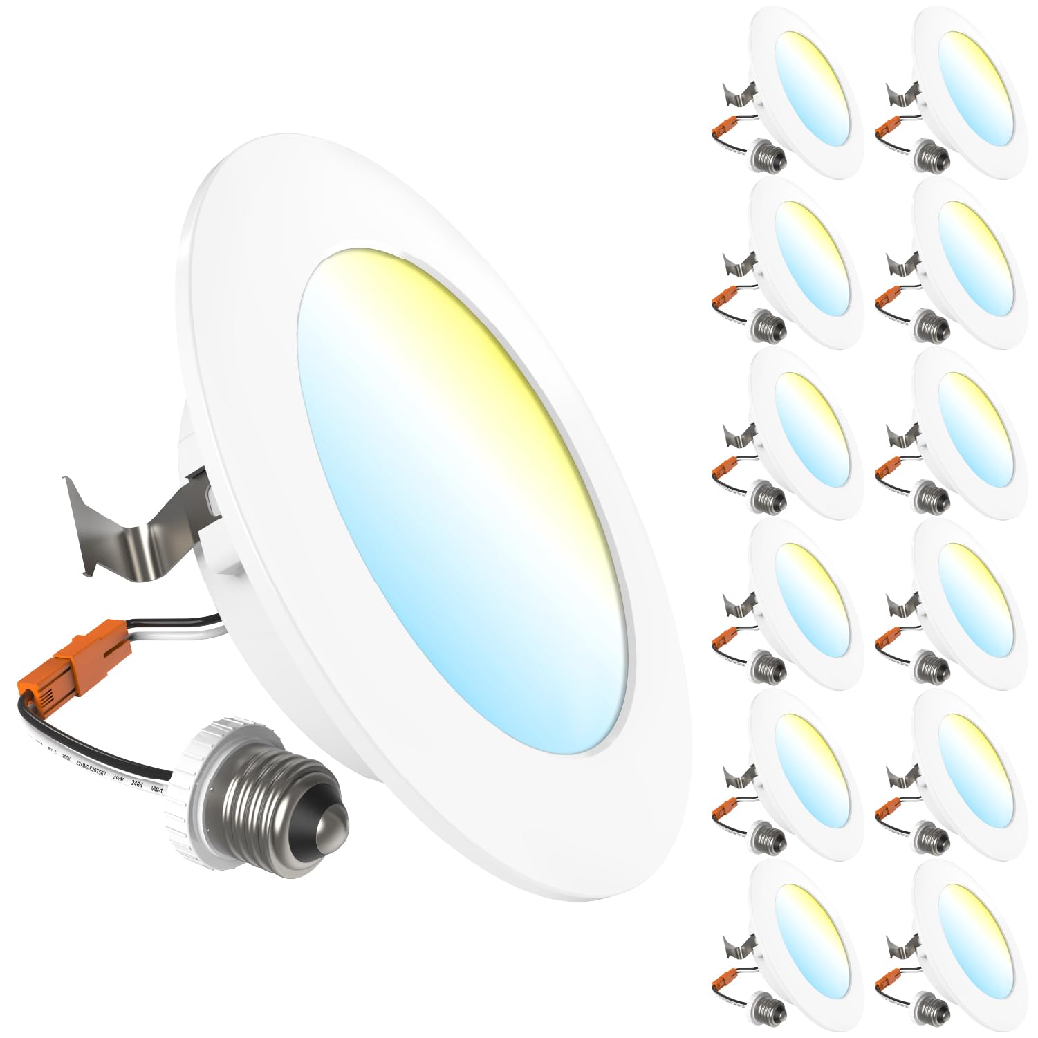 Sunco 12 Pack Retrofit LED Recessed Lighting 6 Inch, Can Lights for Ceiling, 1200 LM, 15W, Selectable CCT 2700K/3000K/4000K/5000K/6000K, Dimmable, Ultra Thin Flat Light Fixture UL