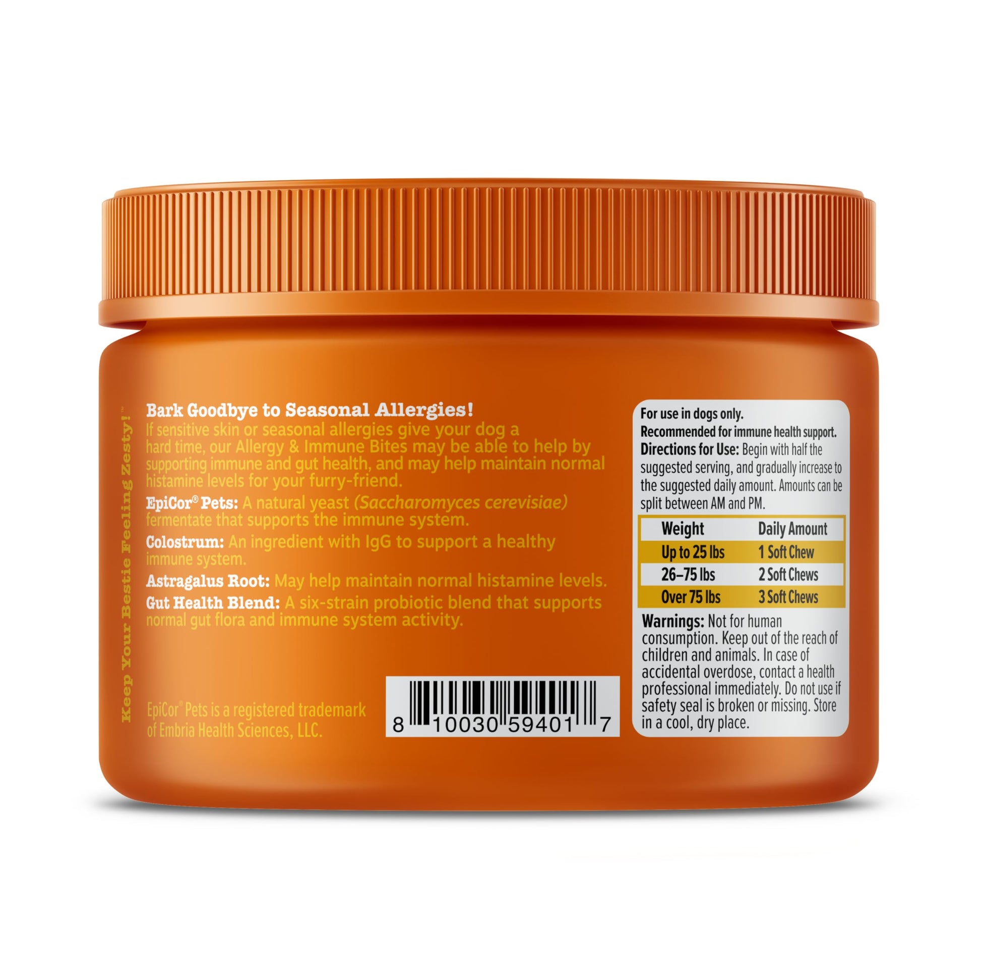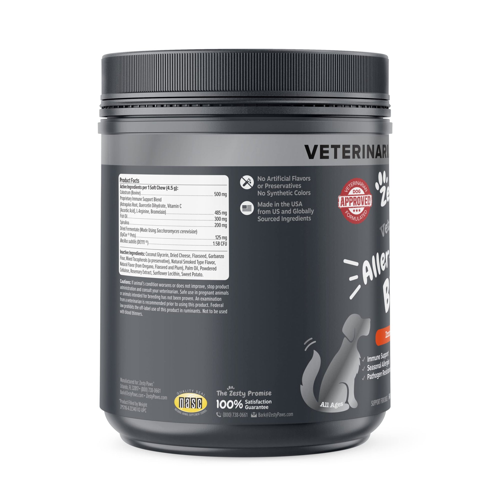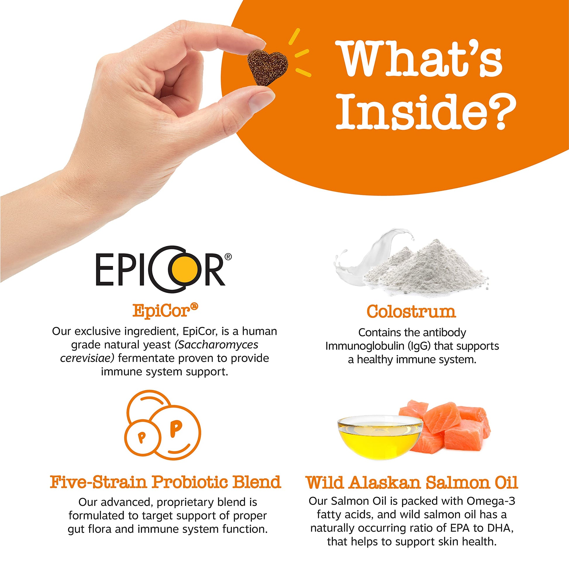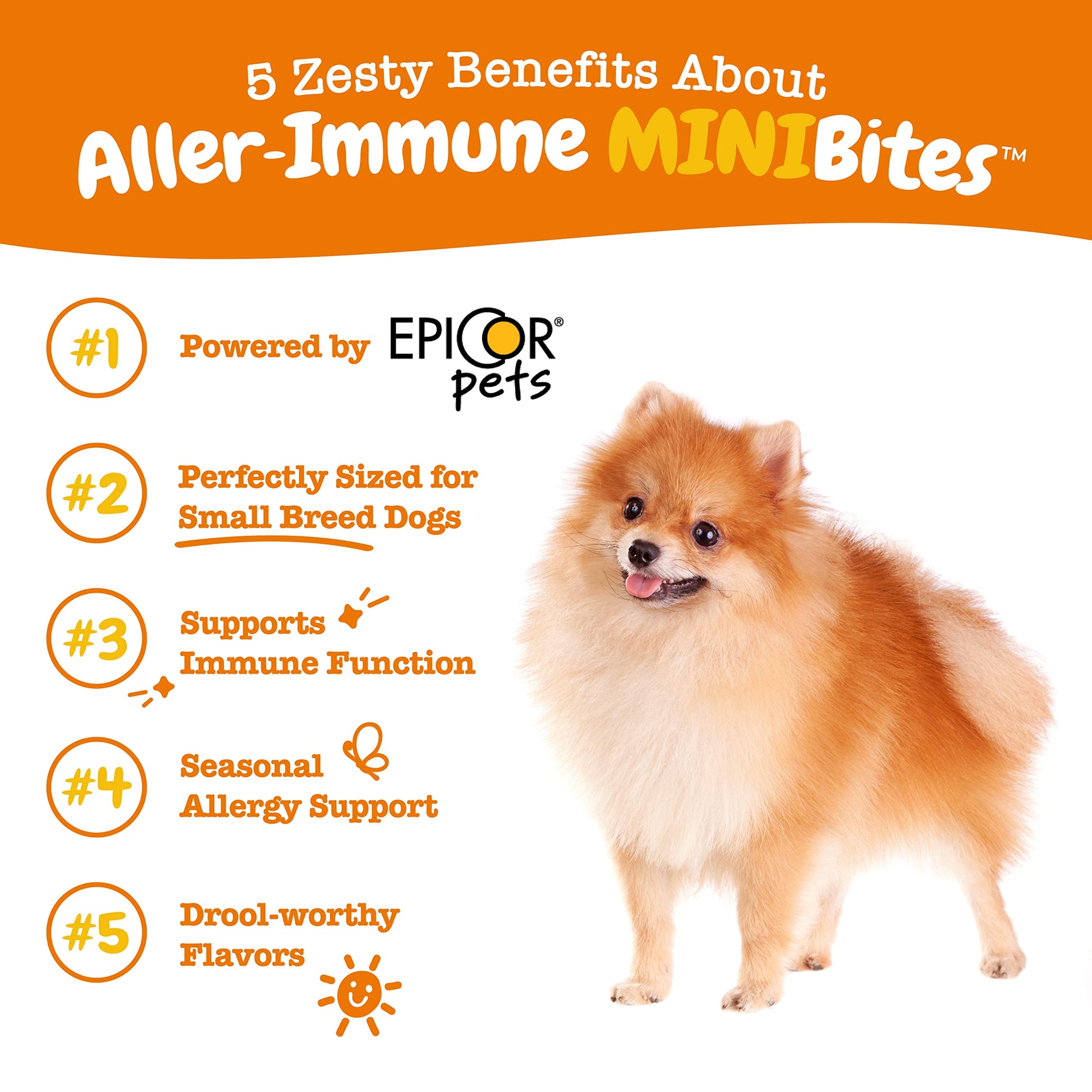Suplemento inmune a las alergias para perros - Con Omega 3 Aceite de salmón salvaje de Alaska y EpiCor + Prebióticos y probióticos digestivos - Alergias estacionales + Anti picor y puntos calientes Apoyo a la piel - 90 masticables Golosinas