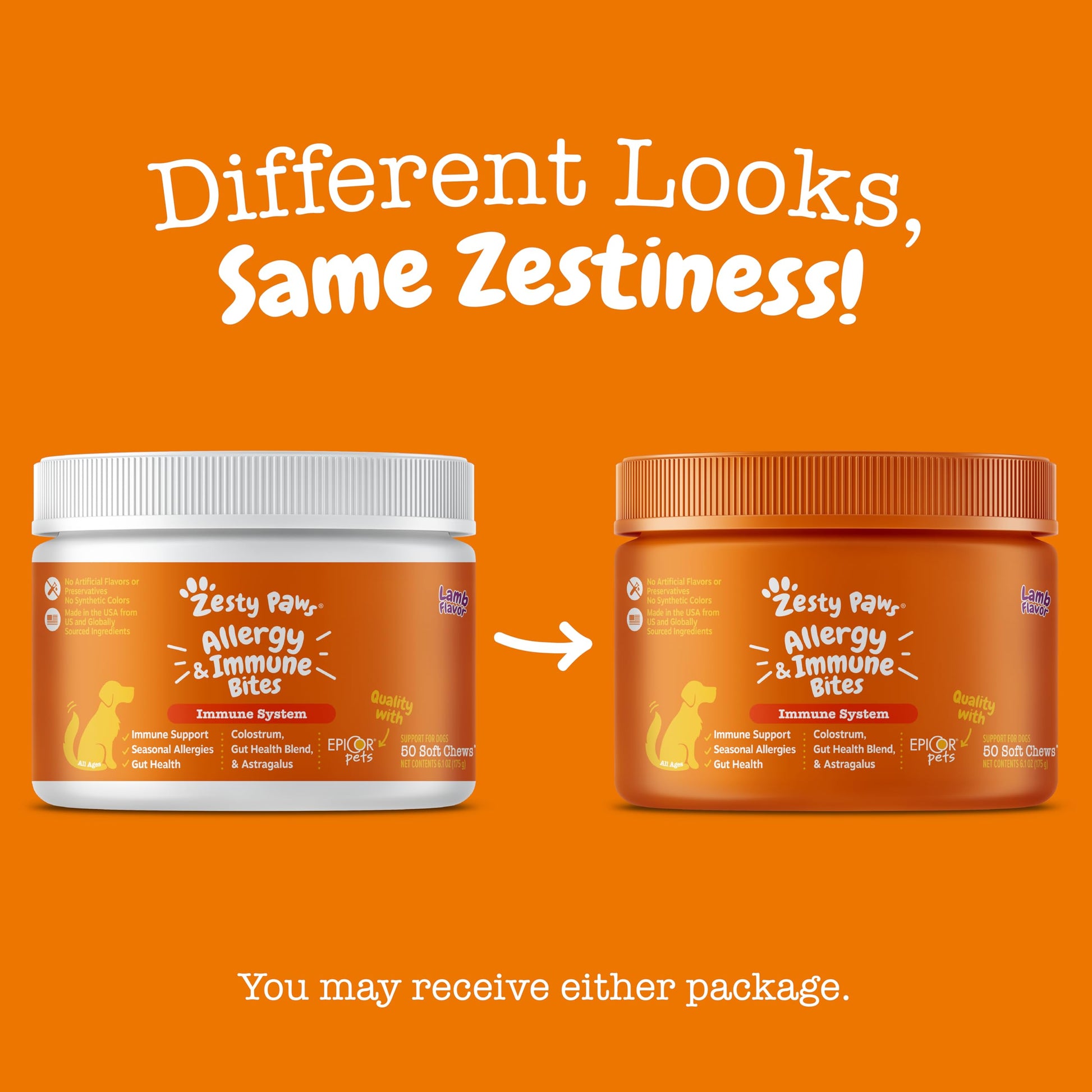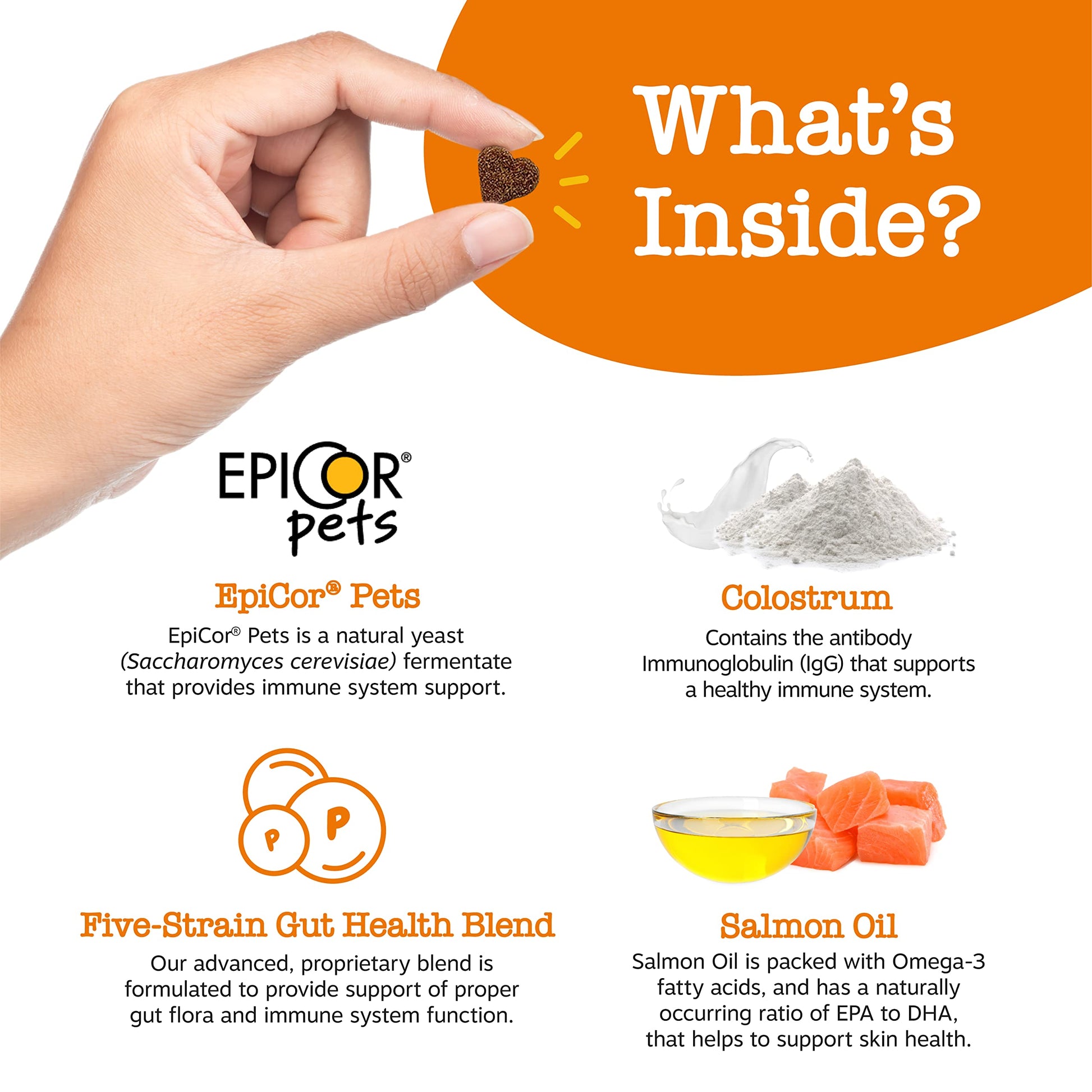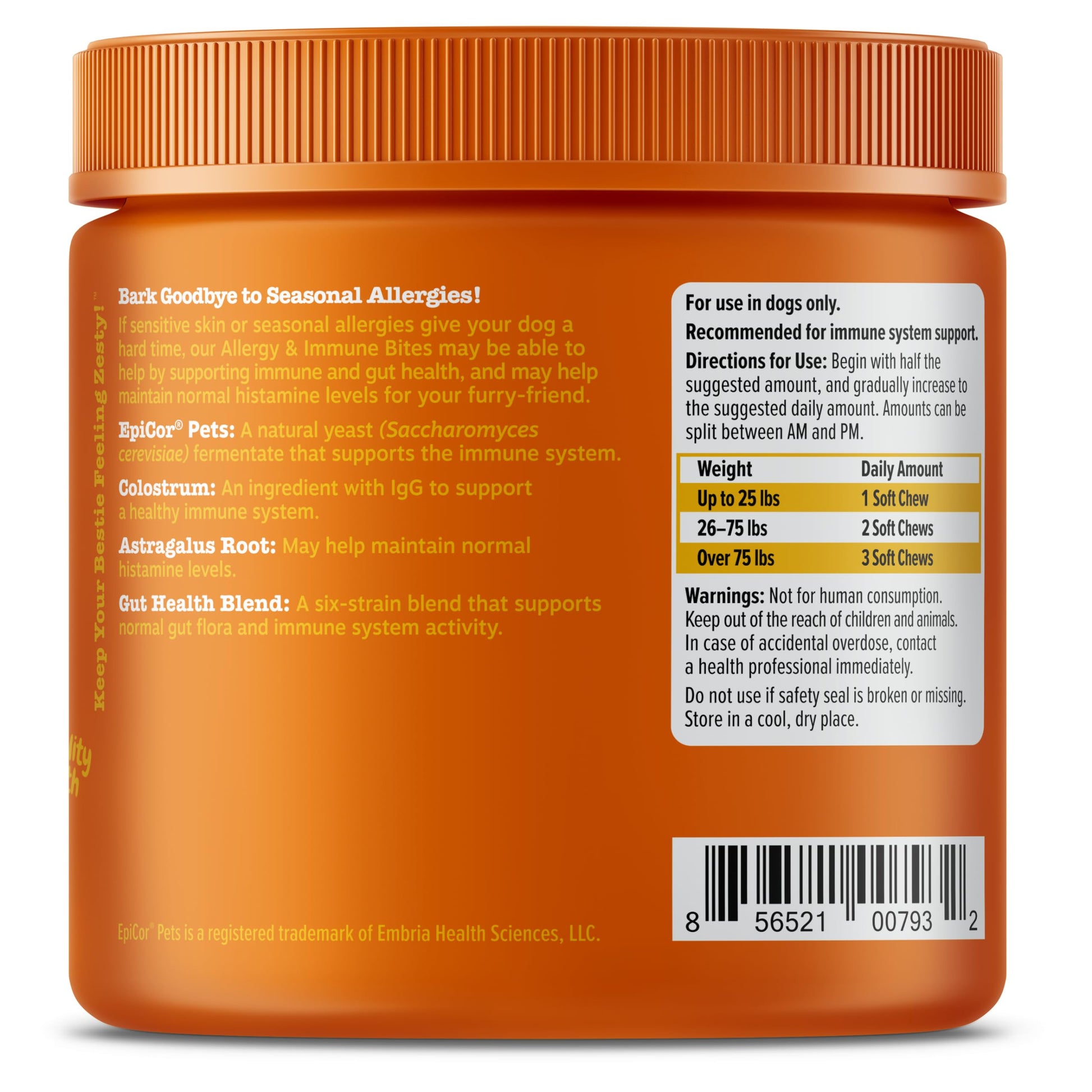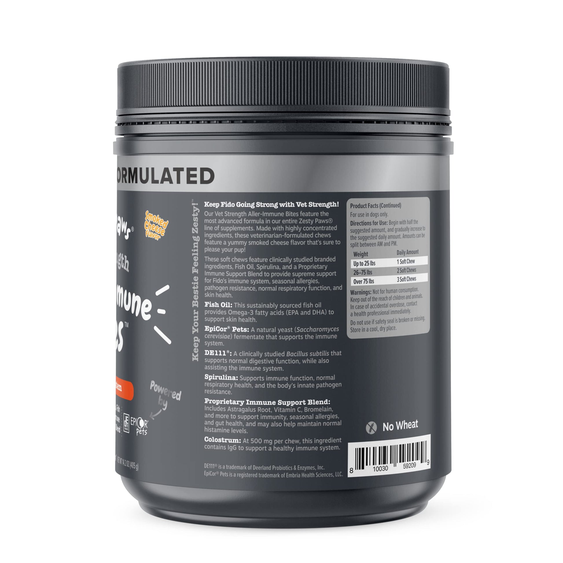 Suplemento inmune a las alergias para perros - Con Omega 3 Aceite de salmón salvaje de Alaska y EpiCor + Prebióticos y probióticos digestivos - Alergias estacionales + Anti picor y puntos calientes Apoyo a la piel - 90 masticables Golosinas
