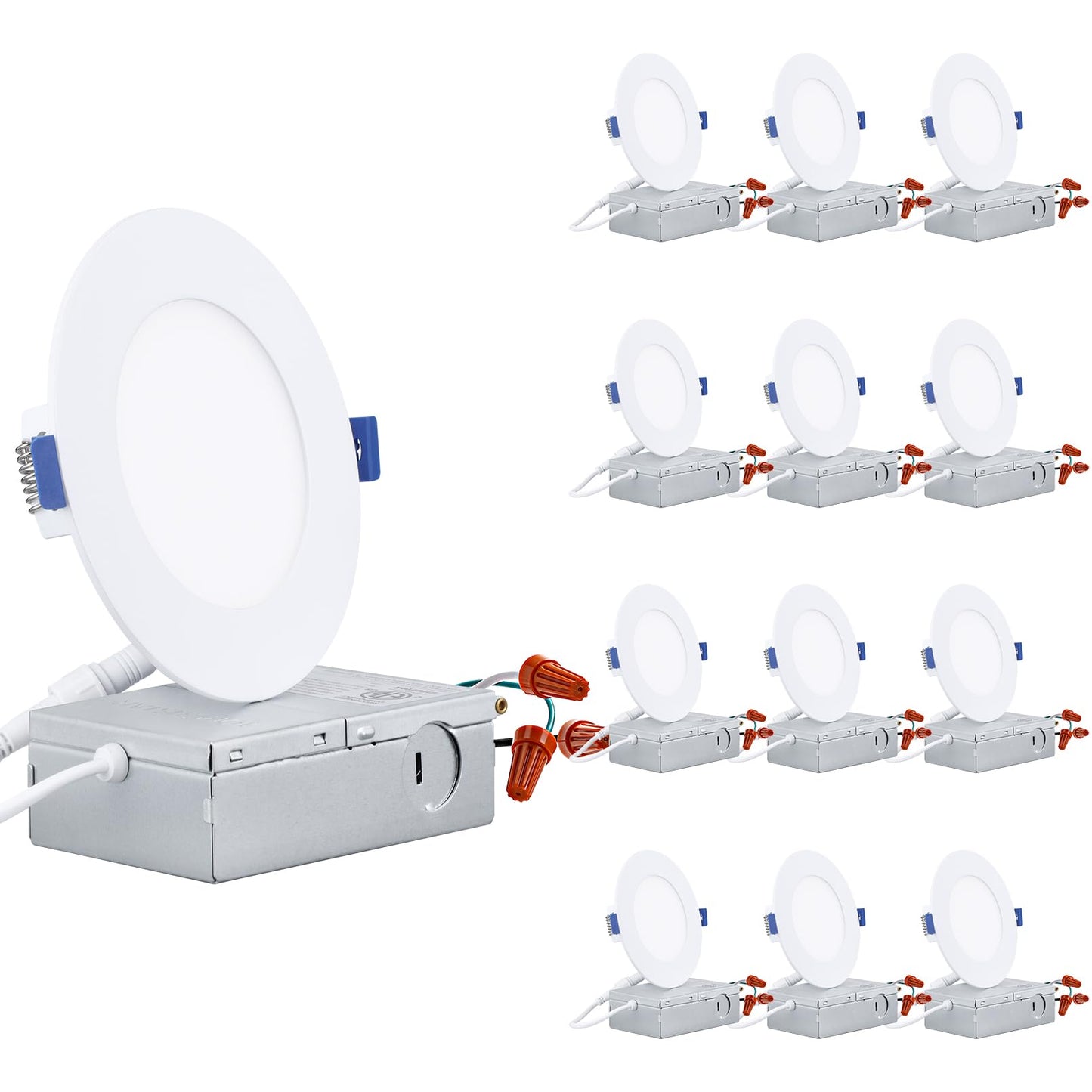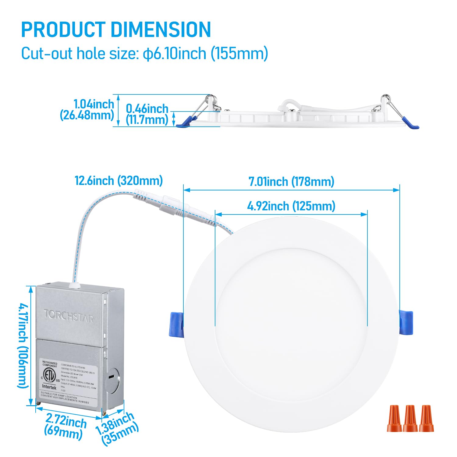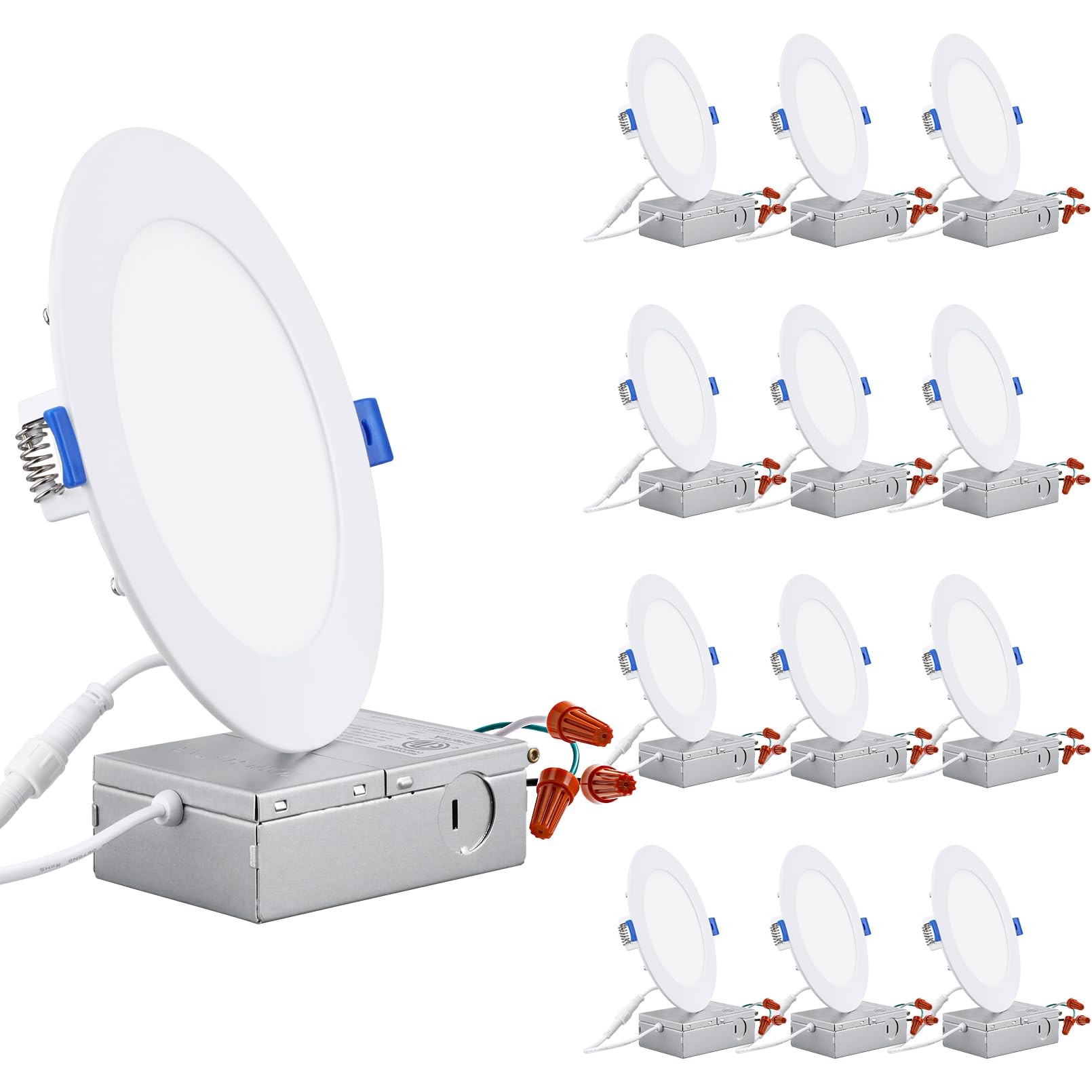 TORCHSTAR Basic Series 12-Pack 6 Inch Ultra-Thin LED Recessed Lighting with Junction Box, CRI90, Aluminum, 5000K Daylight, 5%-100% Dimmable Slim Recessed Downlight, 12W 1100LM, ETL and Energy Star