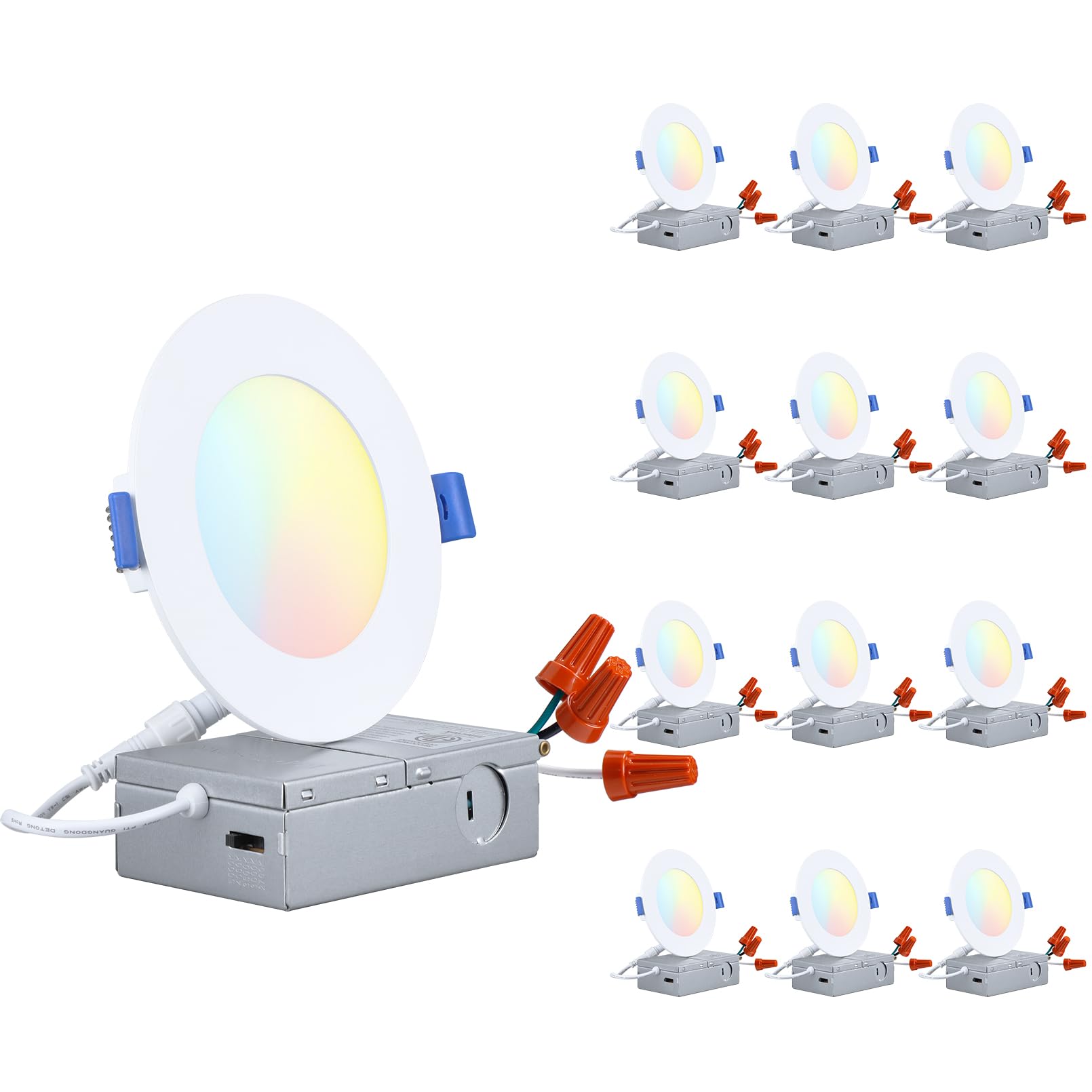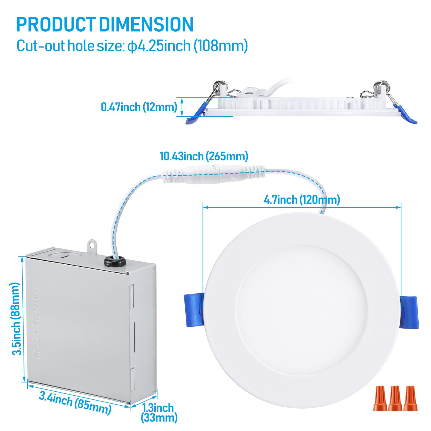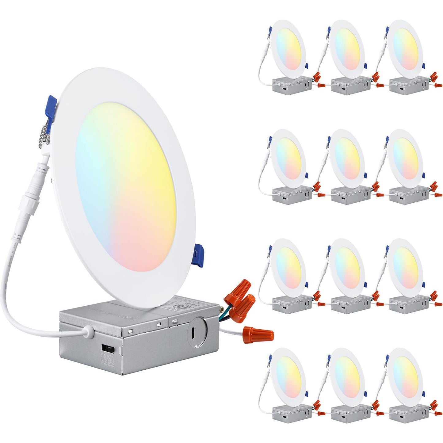 TORCHSTAR Basic Series 12-Pack 6 Inch Ultra-Thin LED Recessed Lighting with Junction Box, CRI90, Aluminum, 5000K Daylight, 5%-100% Dimmable Slim Recessed Downlight, 12W 1100LM, ETL and Energy Star