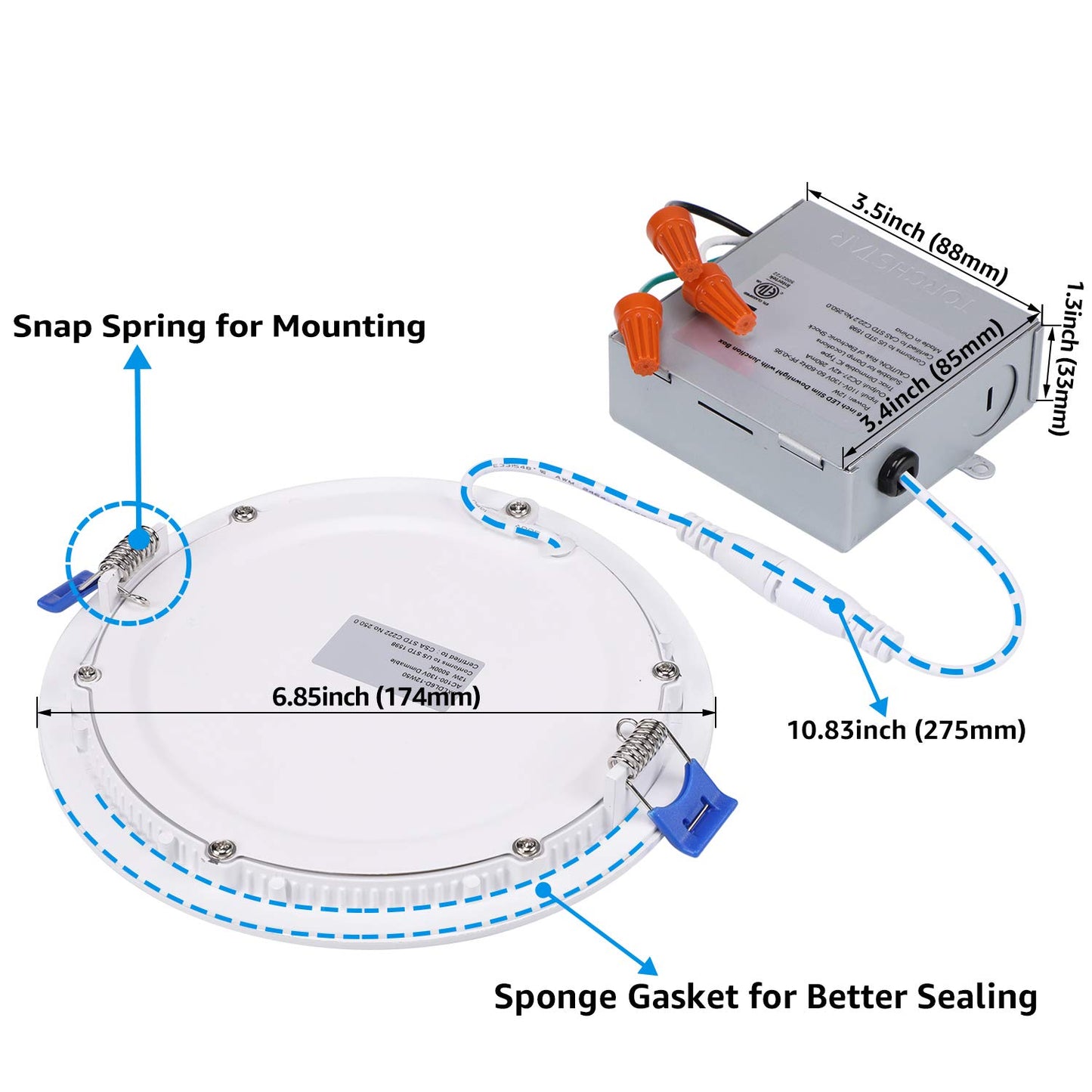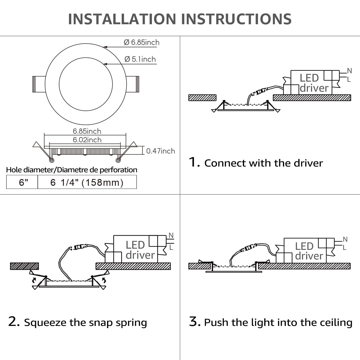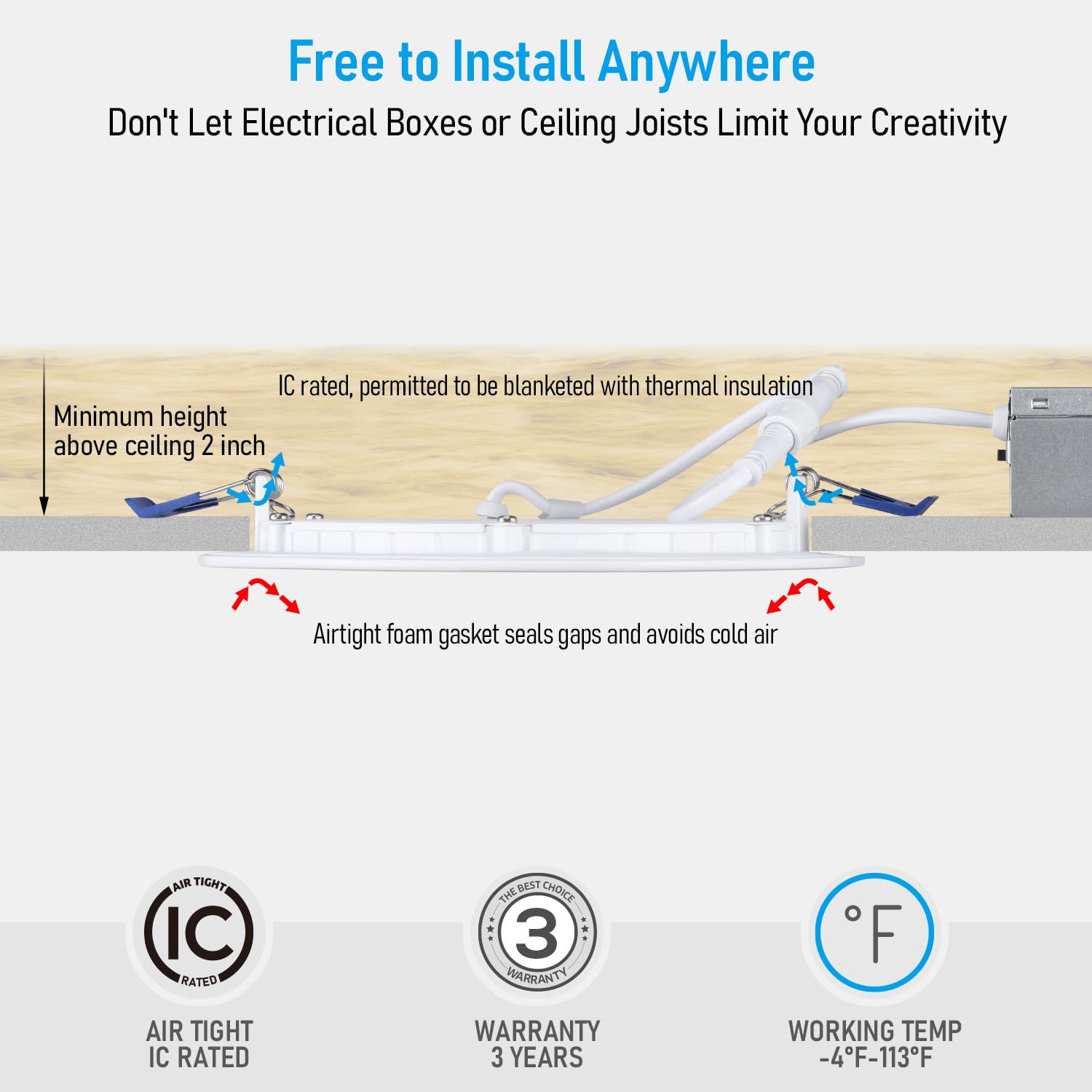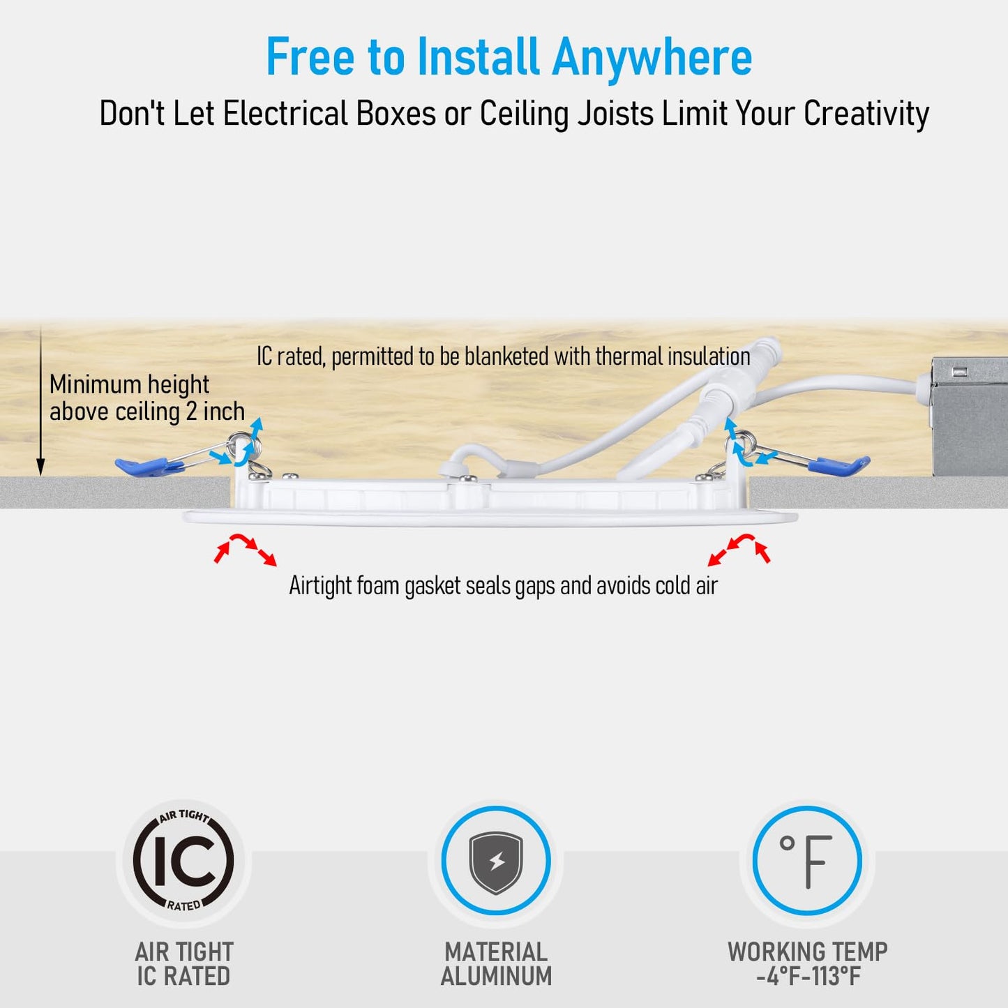- Easy Install: Say goodbye to complex installations. Attach the included j-box to the LED recessed lighting using male/female cables, then secure it to the ceiling with the spring clip. This IC-rated light can directly contact insulation