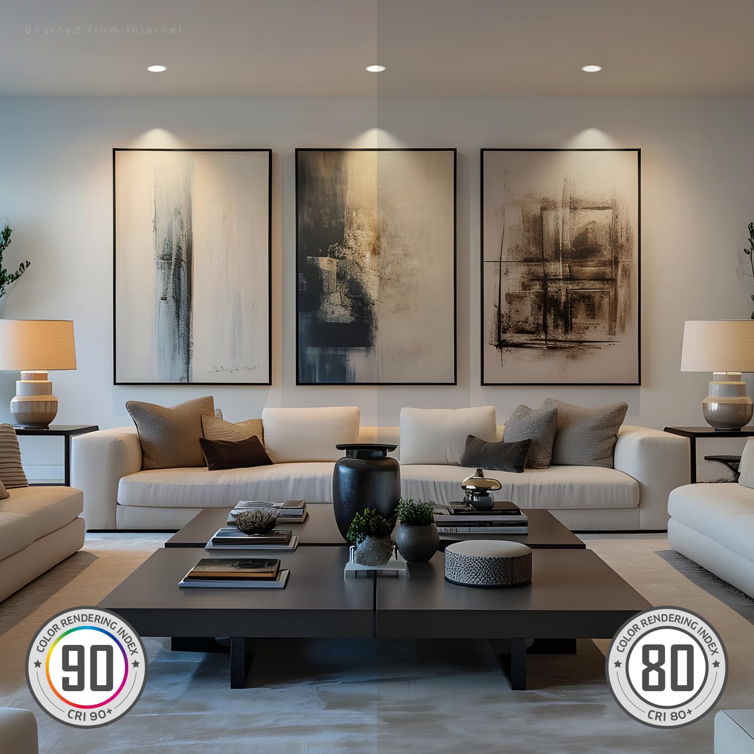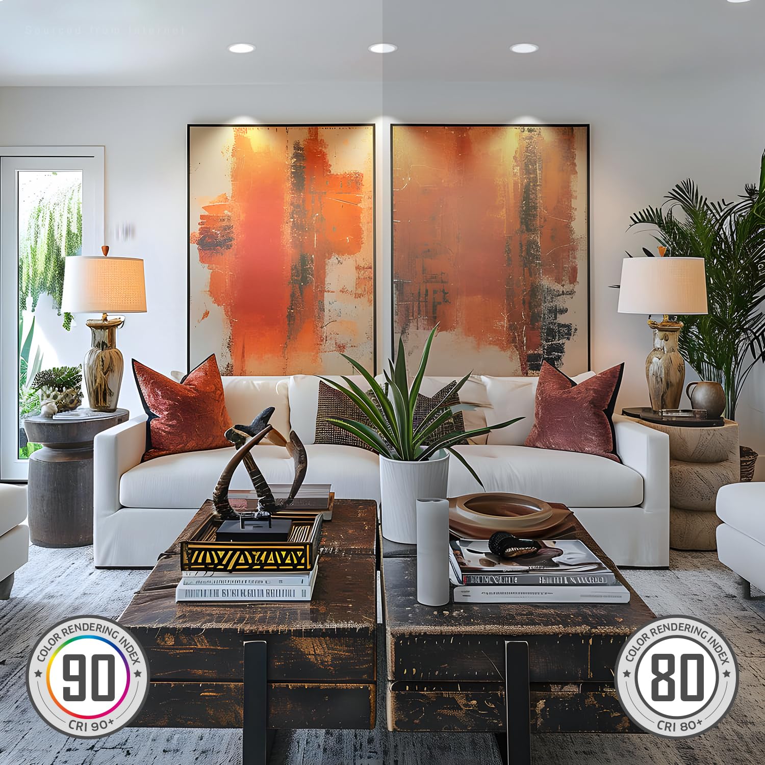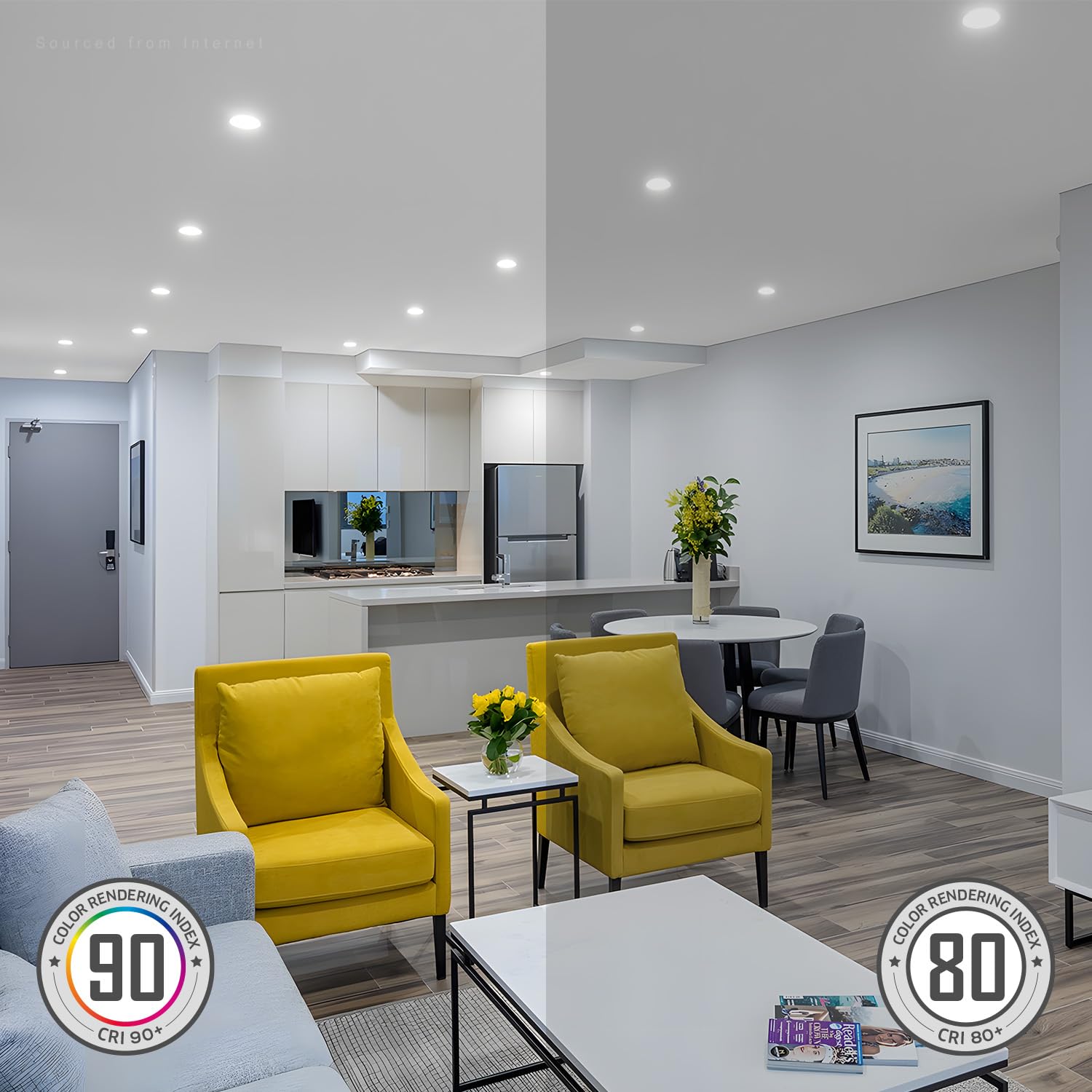 - CRI90 & Dimmable: The 6 inch slim recessed lighting not only offers an dimming range from a cozy 5% to vibrant 100%, but also incorporates a high CRI90. These lights ensure that your space is illuminated with true and vivid colors, enhancing the overall ambiance