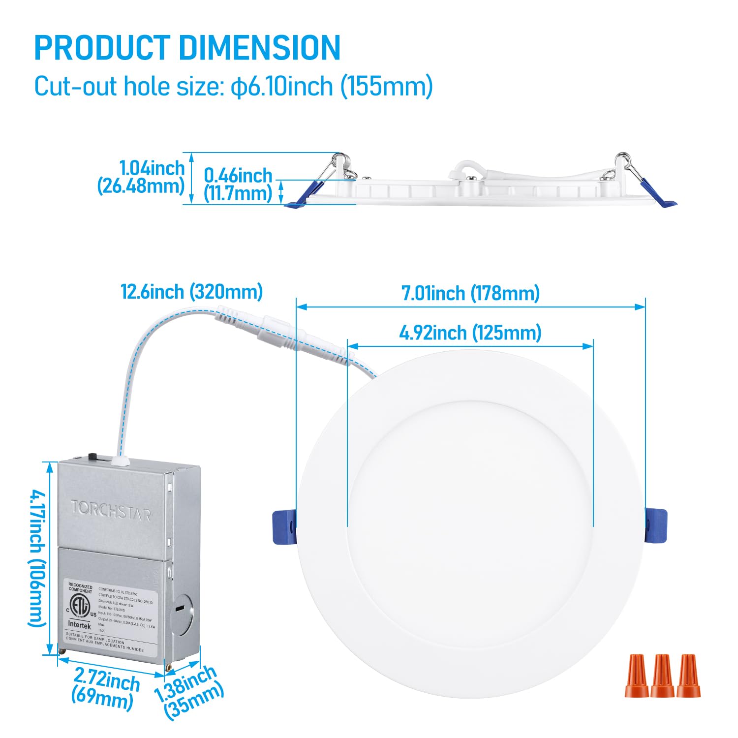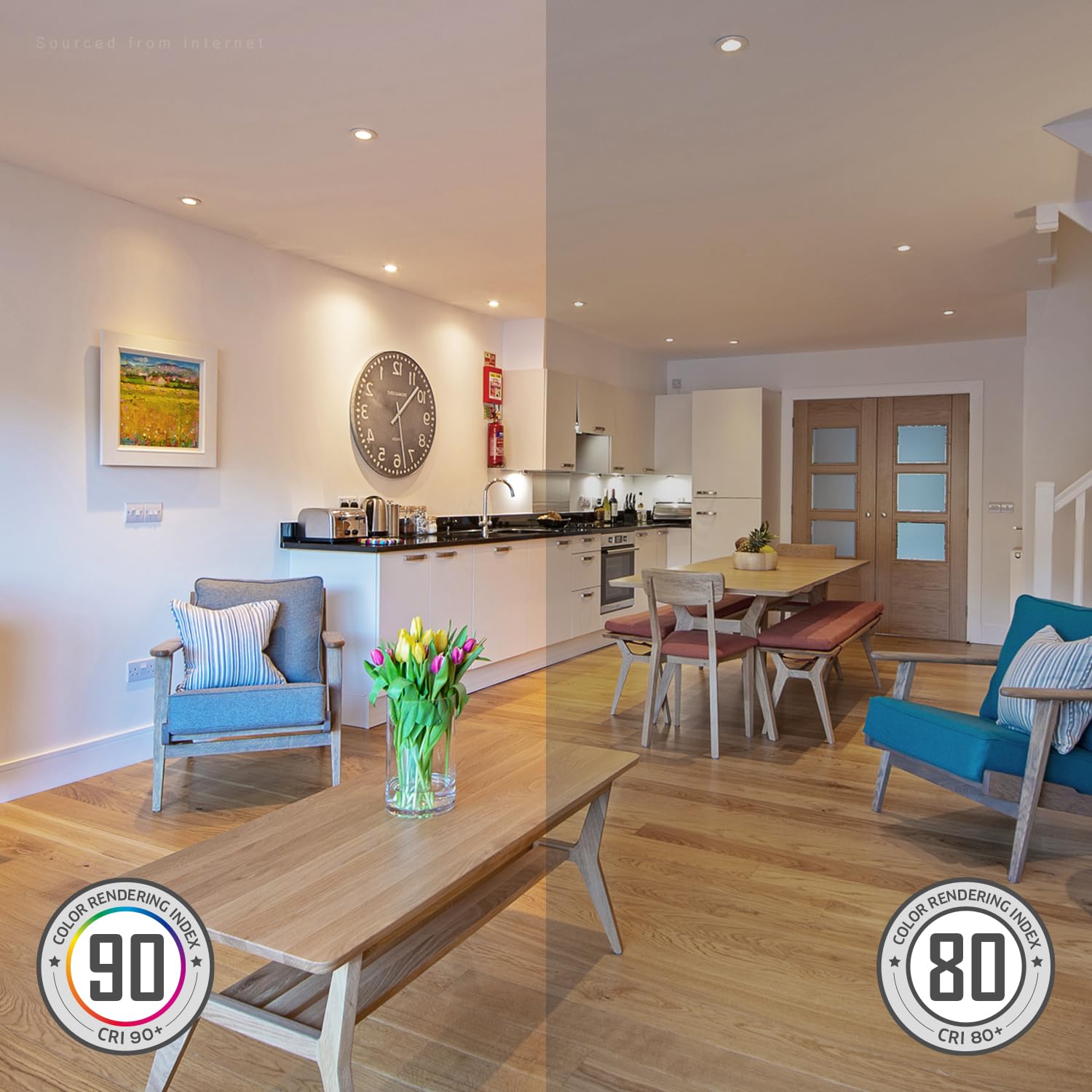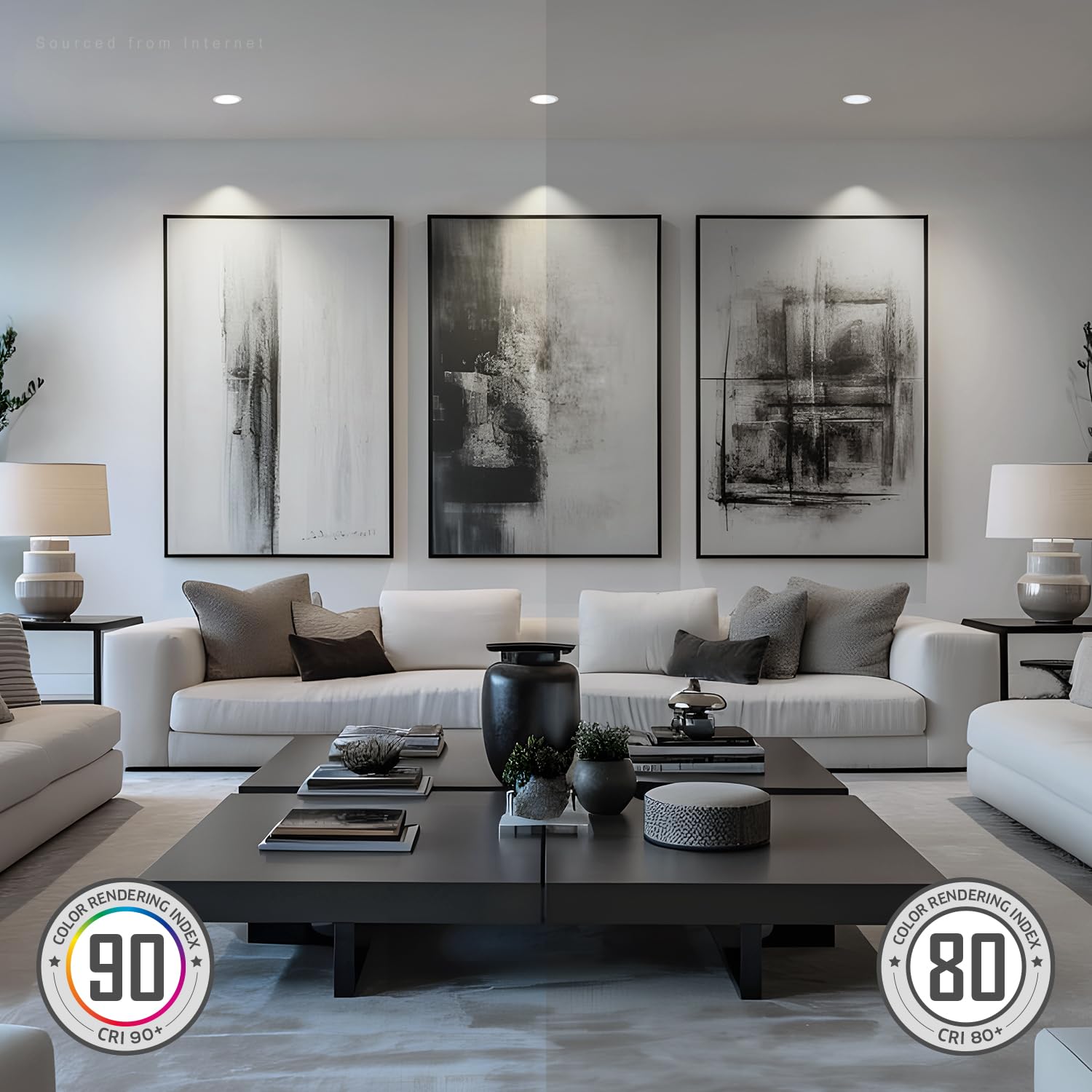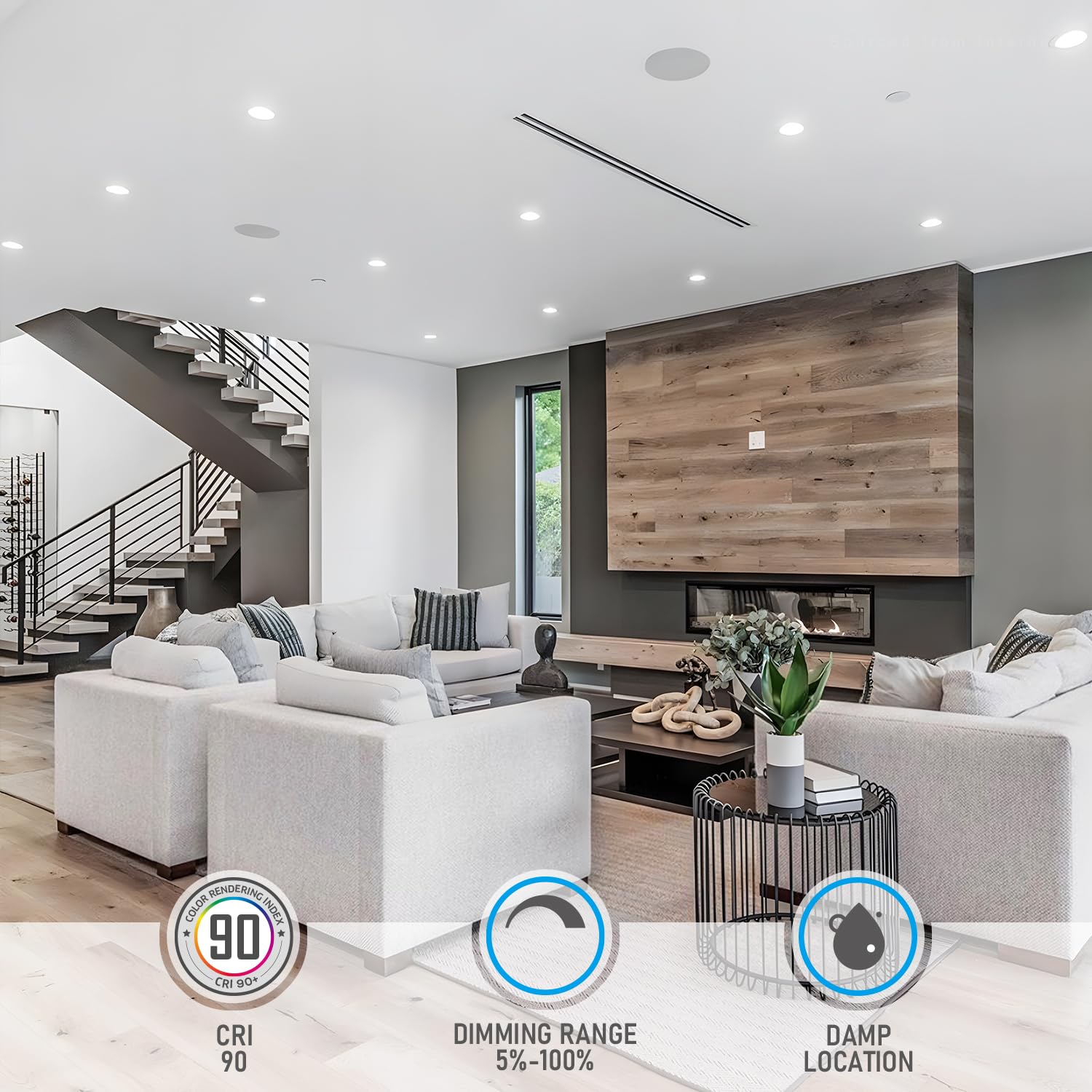 - CRI90 & Dimmable: The 6 inch slim recessed lighting not only offers an dimming range from a cozy 5% to vibrant 100%, but also incorporates a high CRI90. These lights ensure that your space is illuminated with true and vivid colors, enhancing the overall ambiance