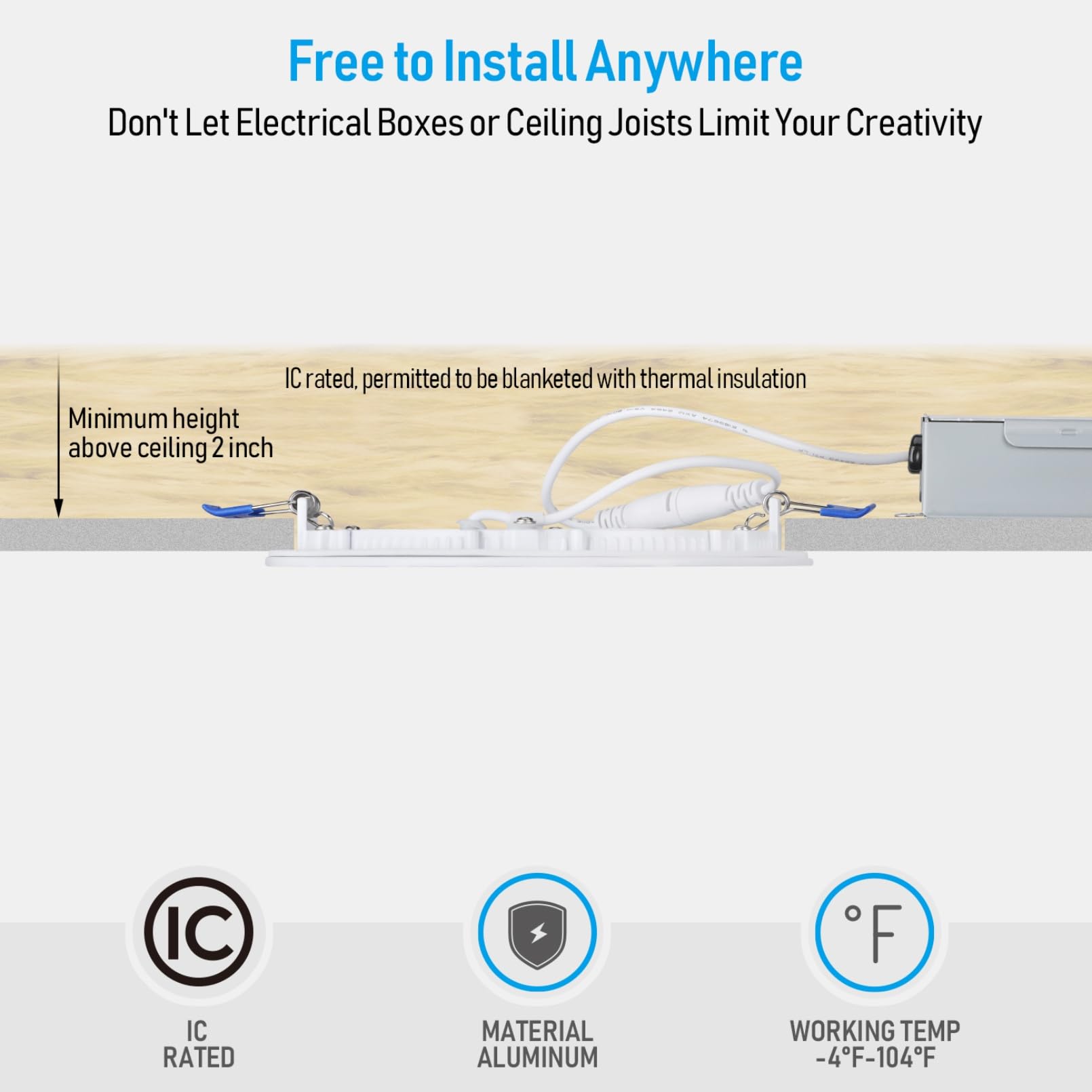 - Perfect Indoor Lighting: With only 2 inches of clearance needed and unrestricted by housing cans, this high-brightness recessed lights suit narrow ceilings perfectly and various indoor areas like living room, bedroom, kitchens, and hallways