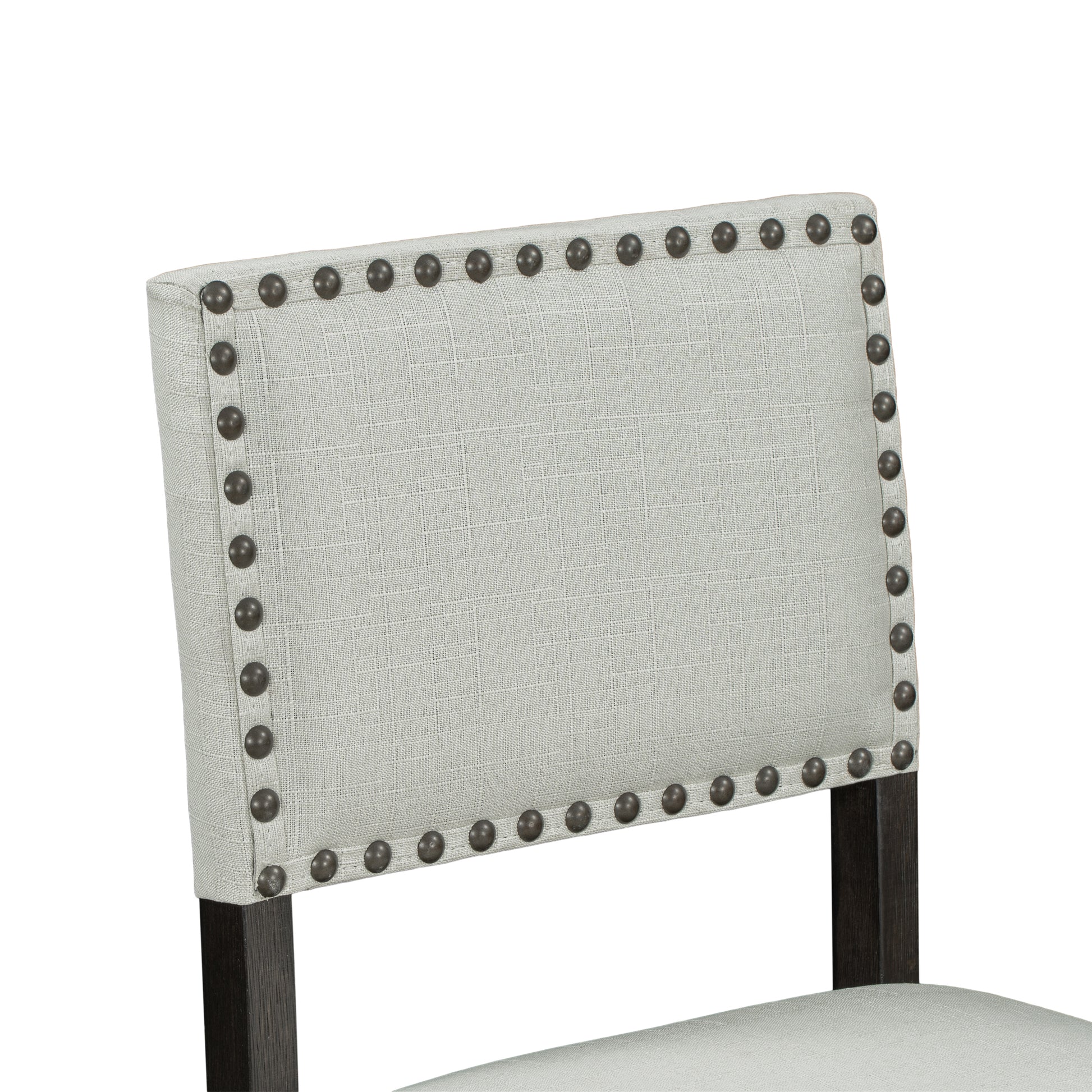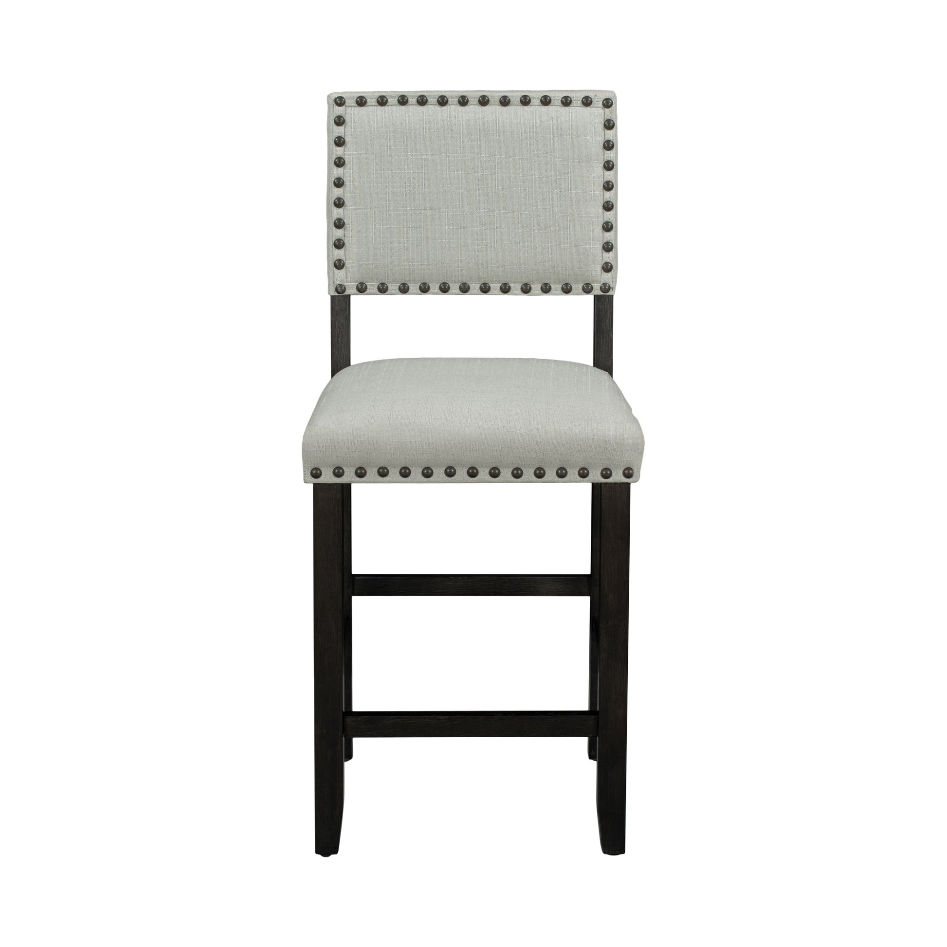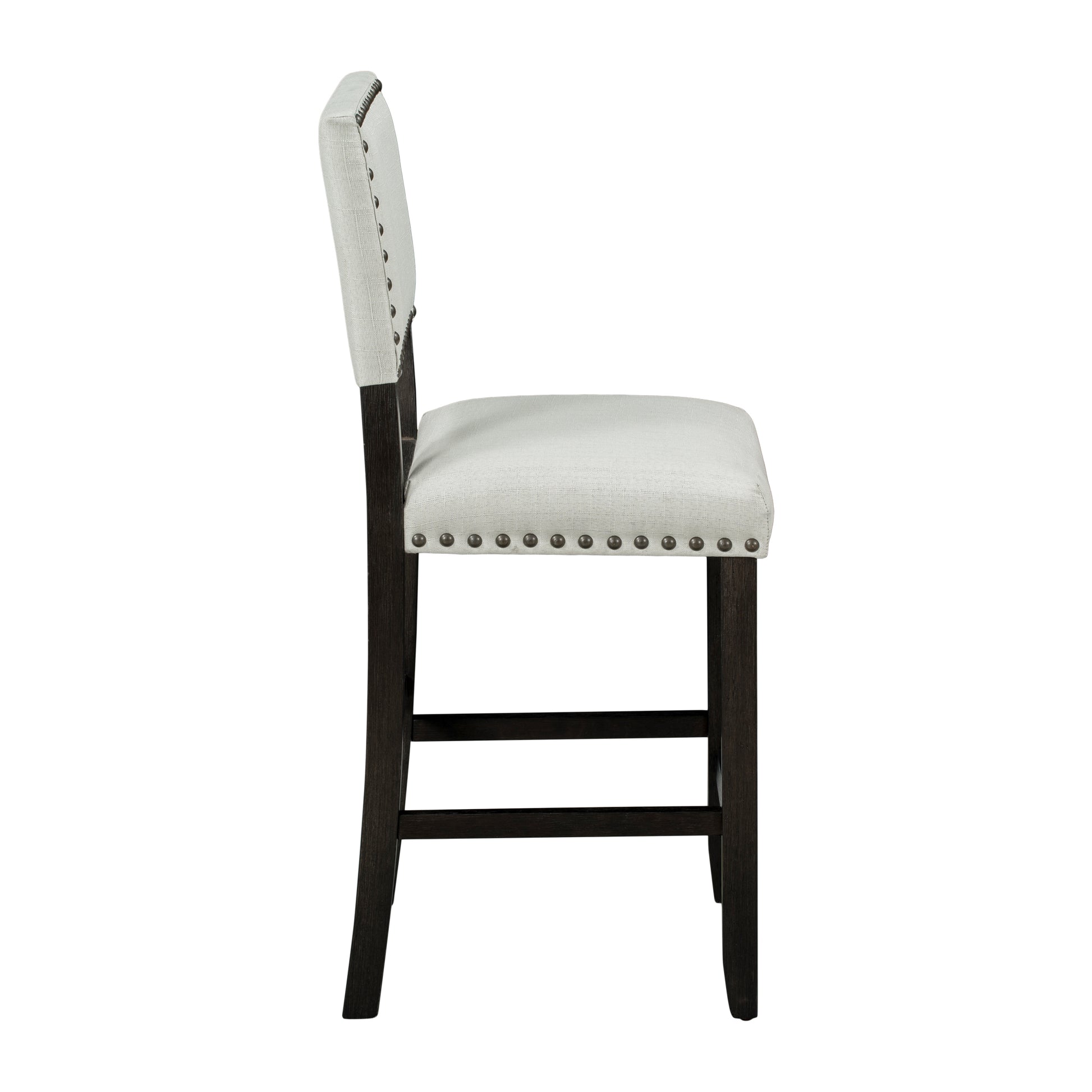 Elegant Appearance: Add an air of elegance to your space with this classy 5-piece dining set including one wooden counter height table and four cushioned chairs with nail head trim in an eye-catching and contemporary espresso and beige color scheme. Table Dimensions: 52"L x 27"W x 36.3"H. Chair Dimensions: 18"L x 19"W x 40.5"H.