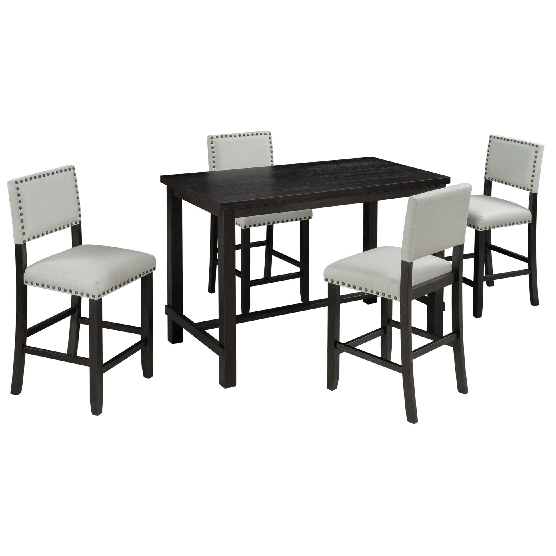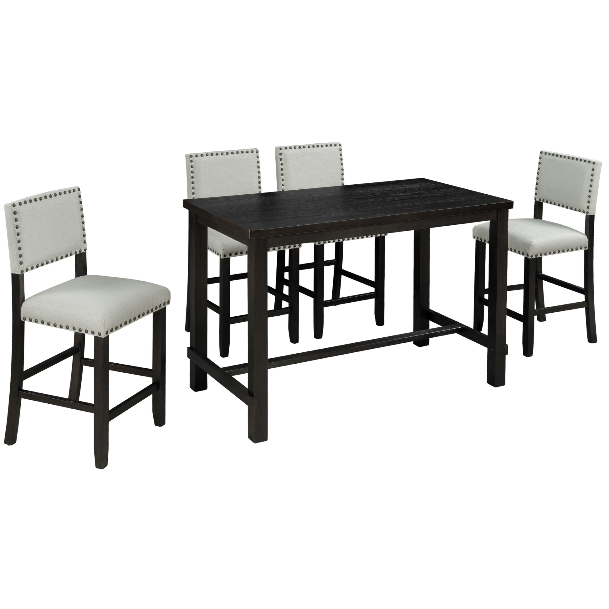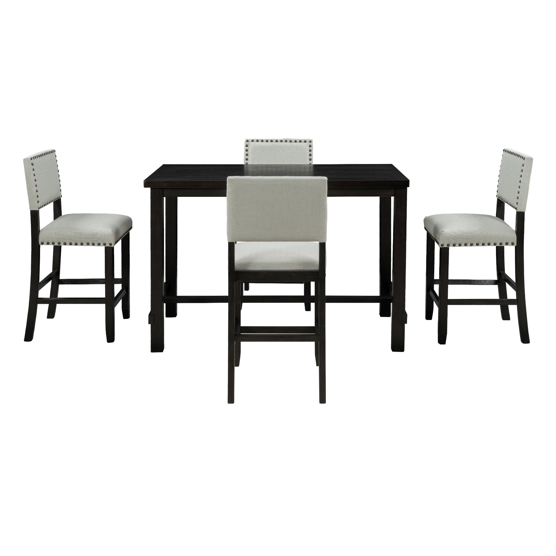 Product Name:TREXM 5-Piece Counter Height Dining Set, Classic Elegant Table and 4 Chairs in Espresso and Beige