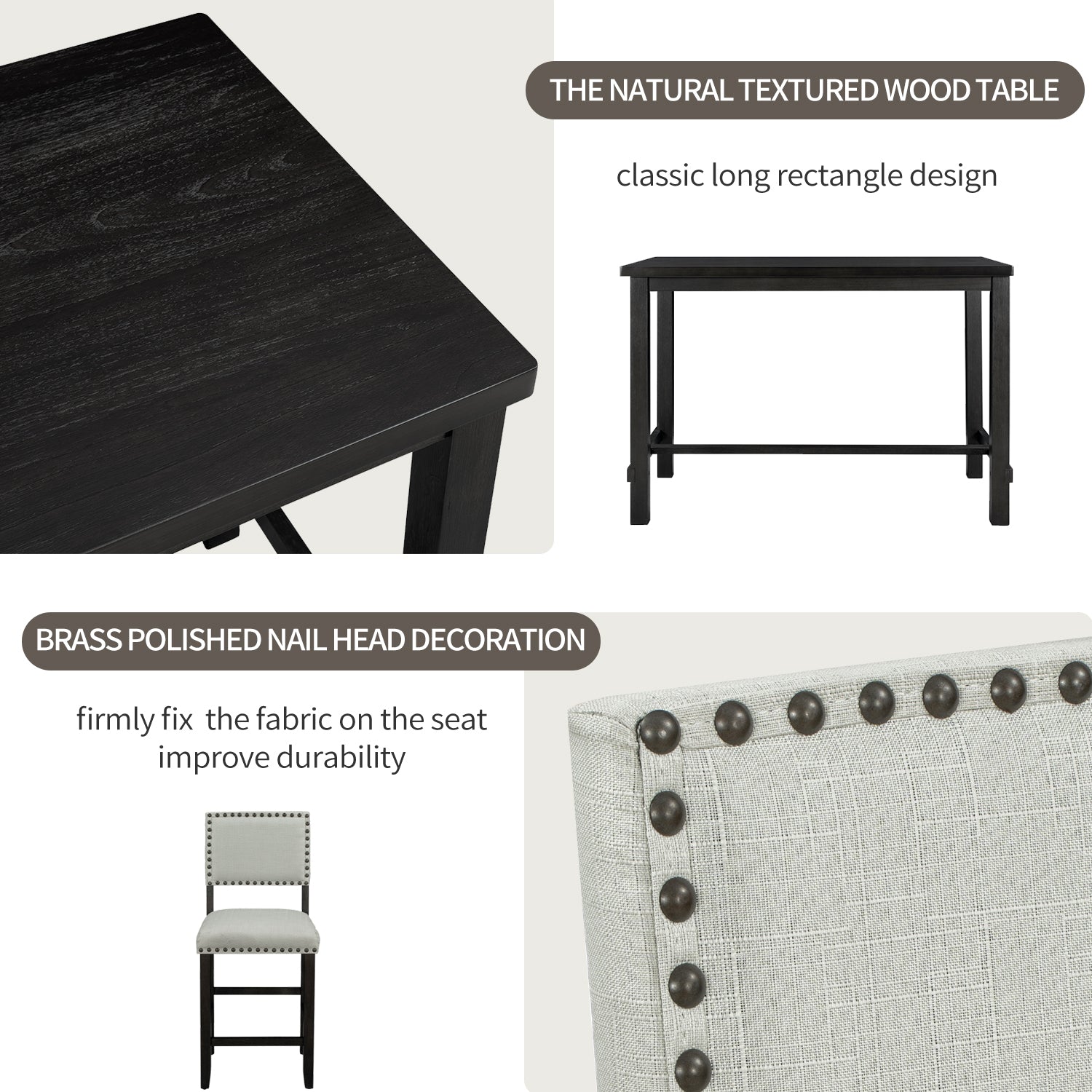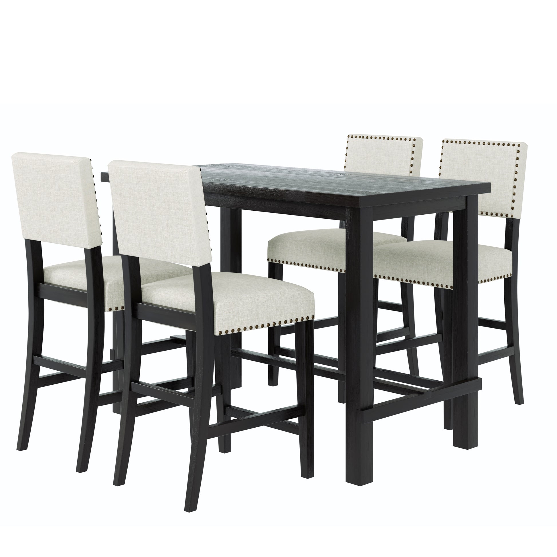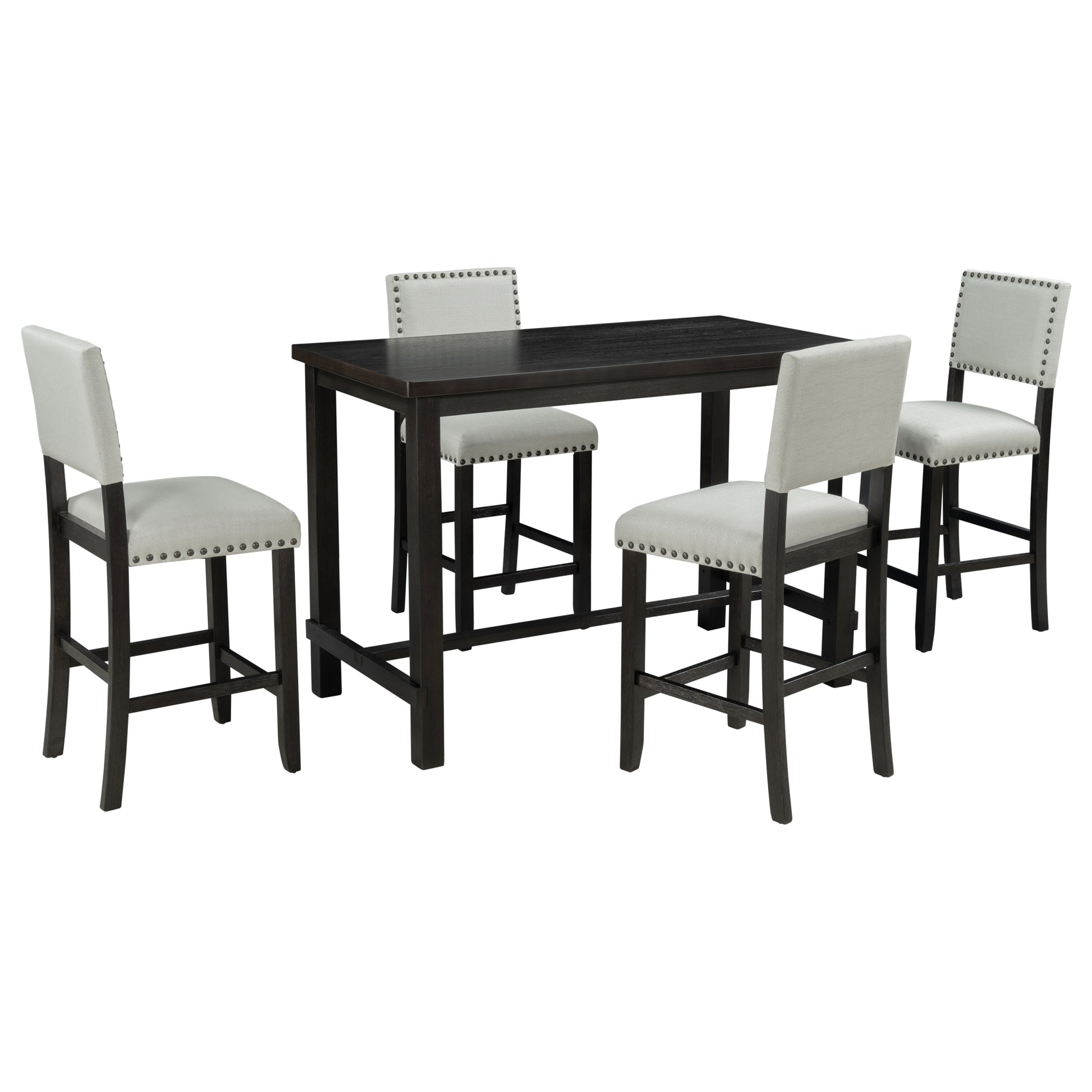 Product Name:TREXM 5-Piece Counter Height Dining Set, Classic Elegant Table and 4 Chairs in Espresso and Beige