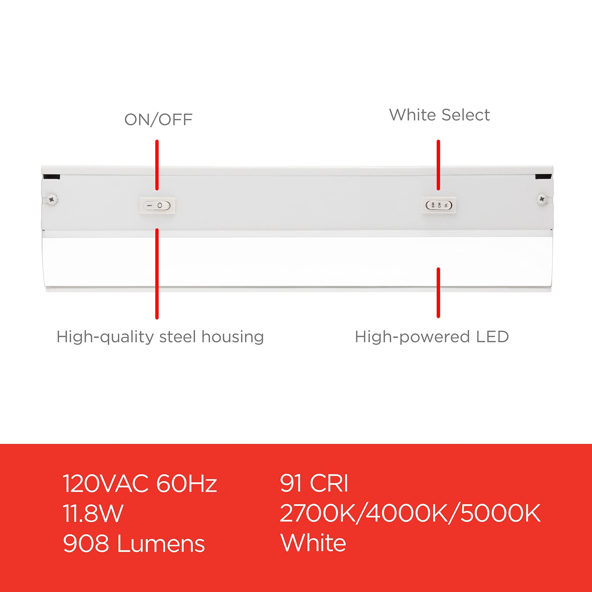 UltraPro 24 inch Hardwired Under Cabinet Lights, 3 Color Settings - 2700K/4000K/5000K - Warm White, Cool White, and Daylight, Under Cabinet Lighting, Dimmable Under Counter Lights for Kitchen, 45368