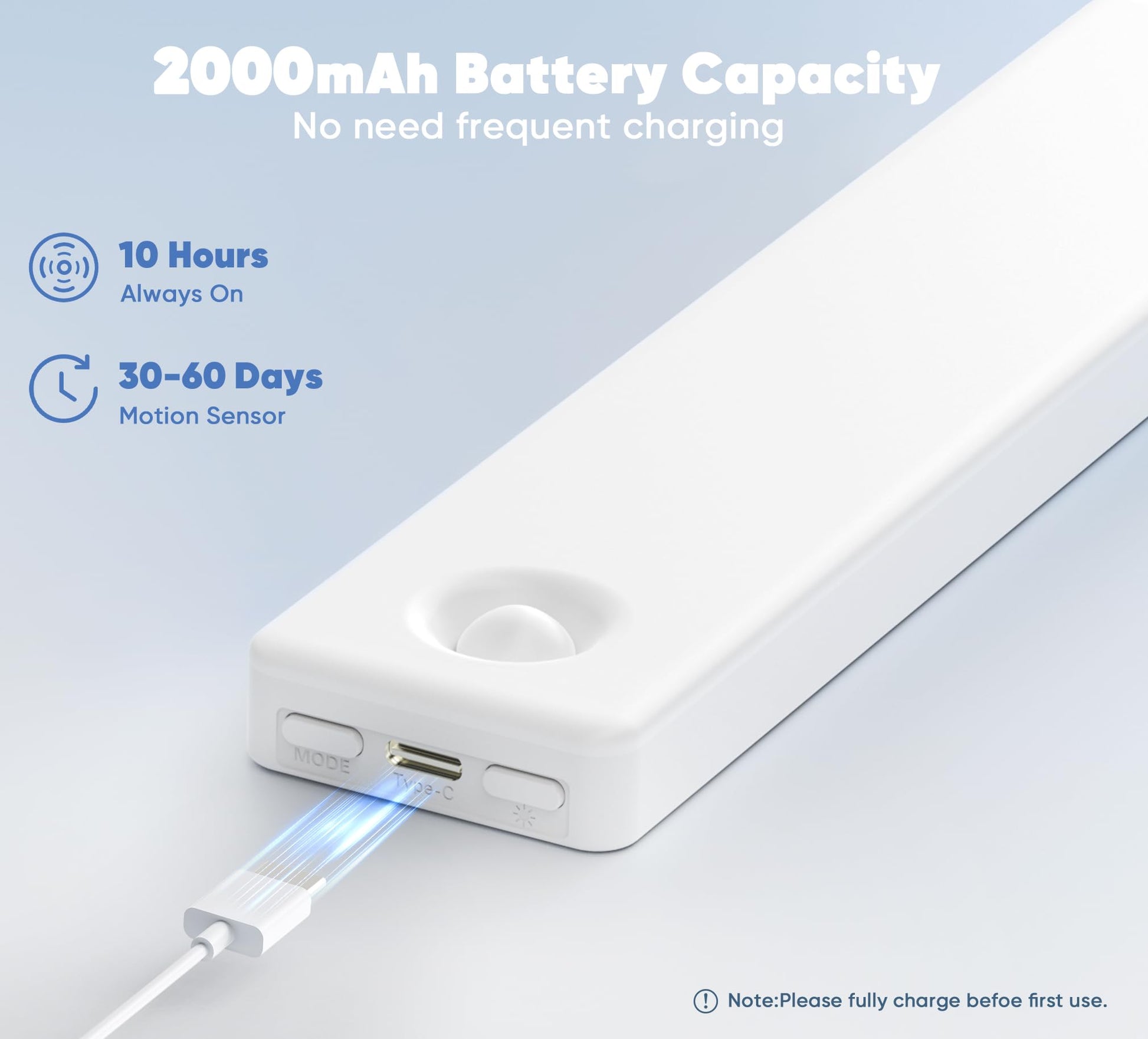 - Long-lasting Illumination: Featuring a high-capacity battery, our rechargeable battery operated lights offer up to 60 days of continuous use in sensor mode, addressing your need for lighting without frequent charging.