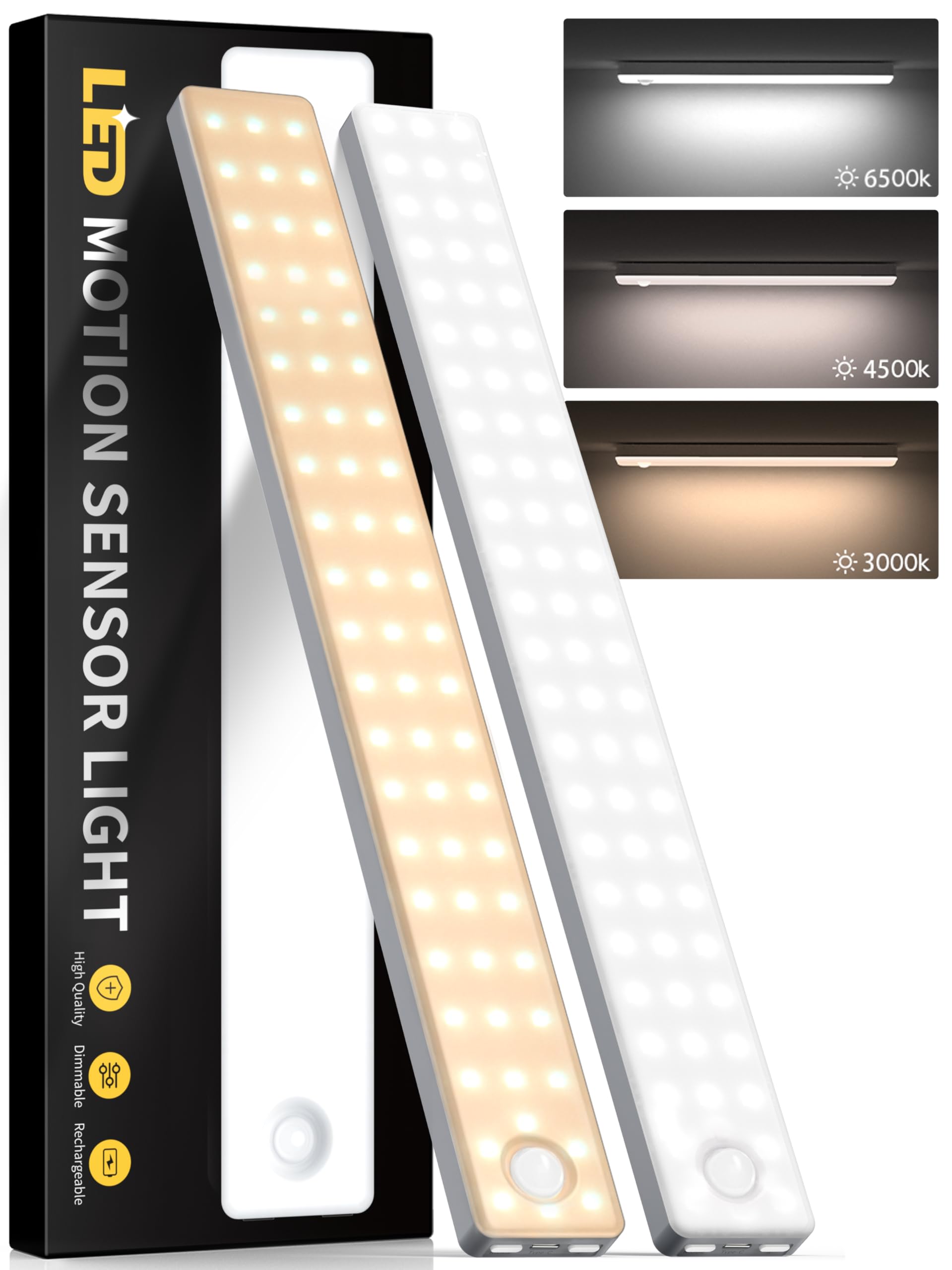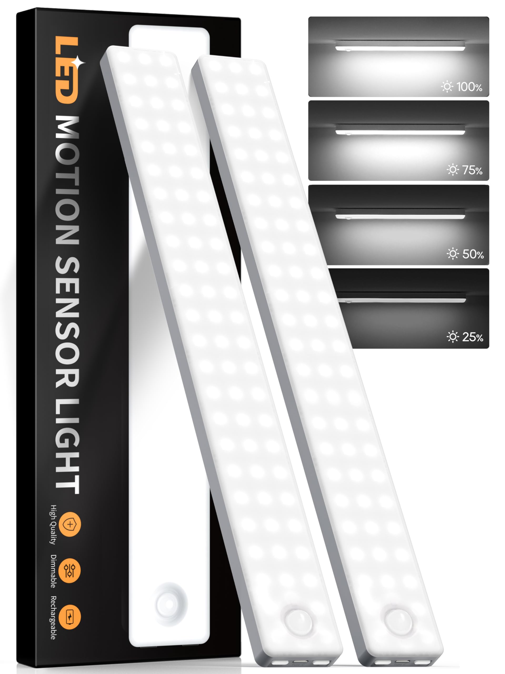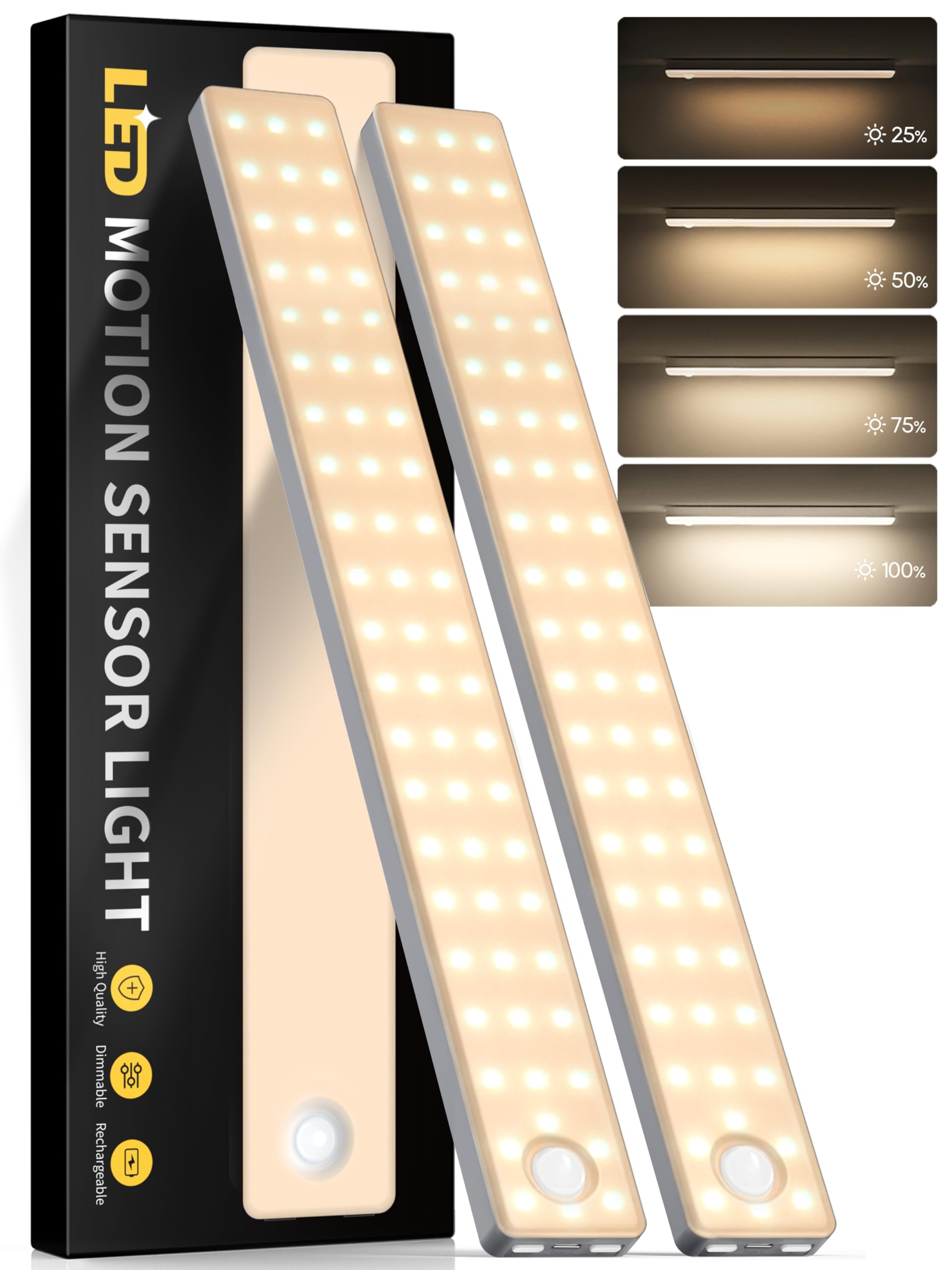 Under Cabinet Lighting, 2 Pack Motion Sensor Light Indoor, Rechargeable Closet Lights Battery Operated, LED Lights for Bedroom, Wireless Dimmable Cabinet Lights, Motion Sensor Step Night Light