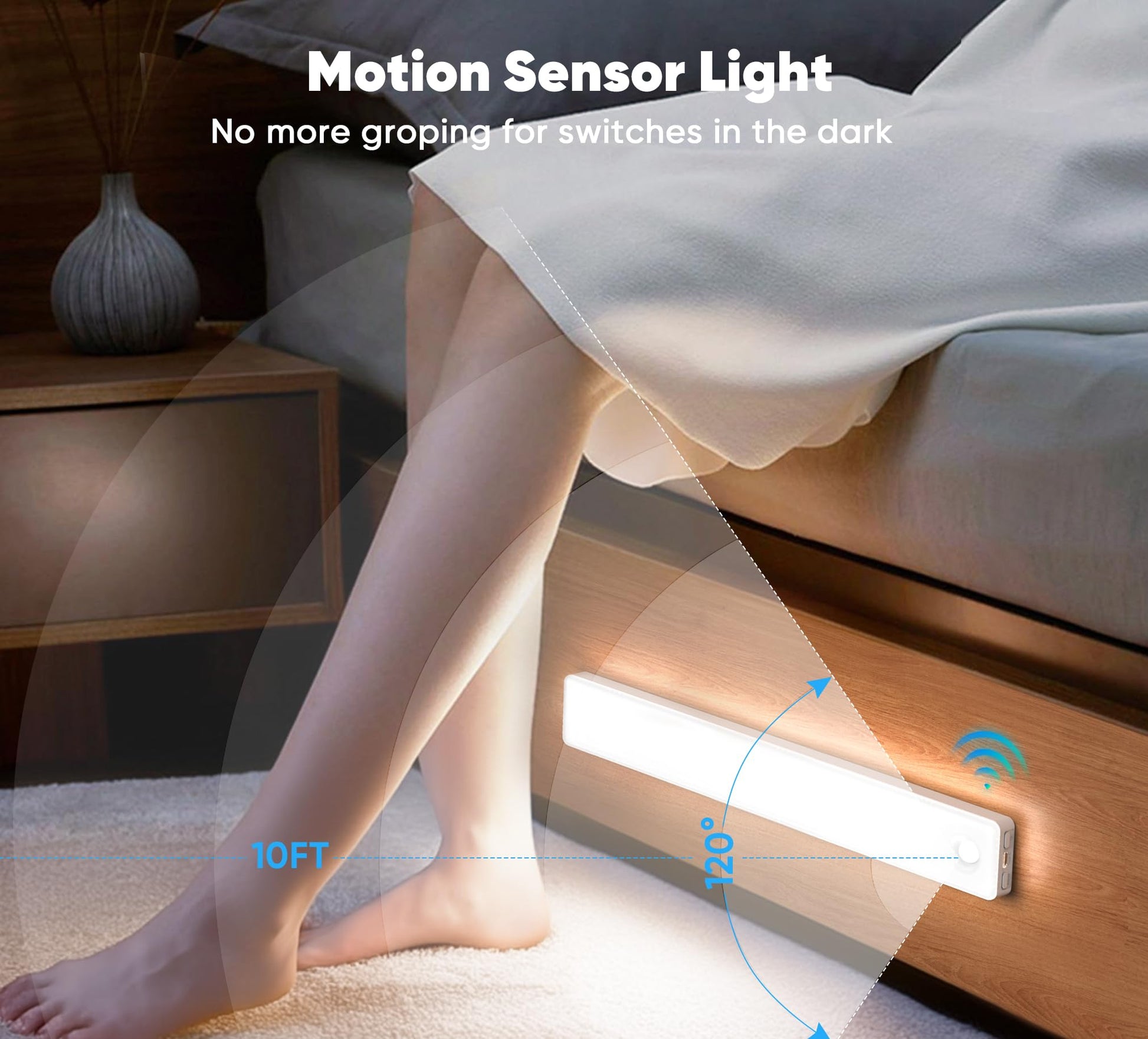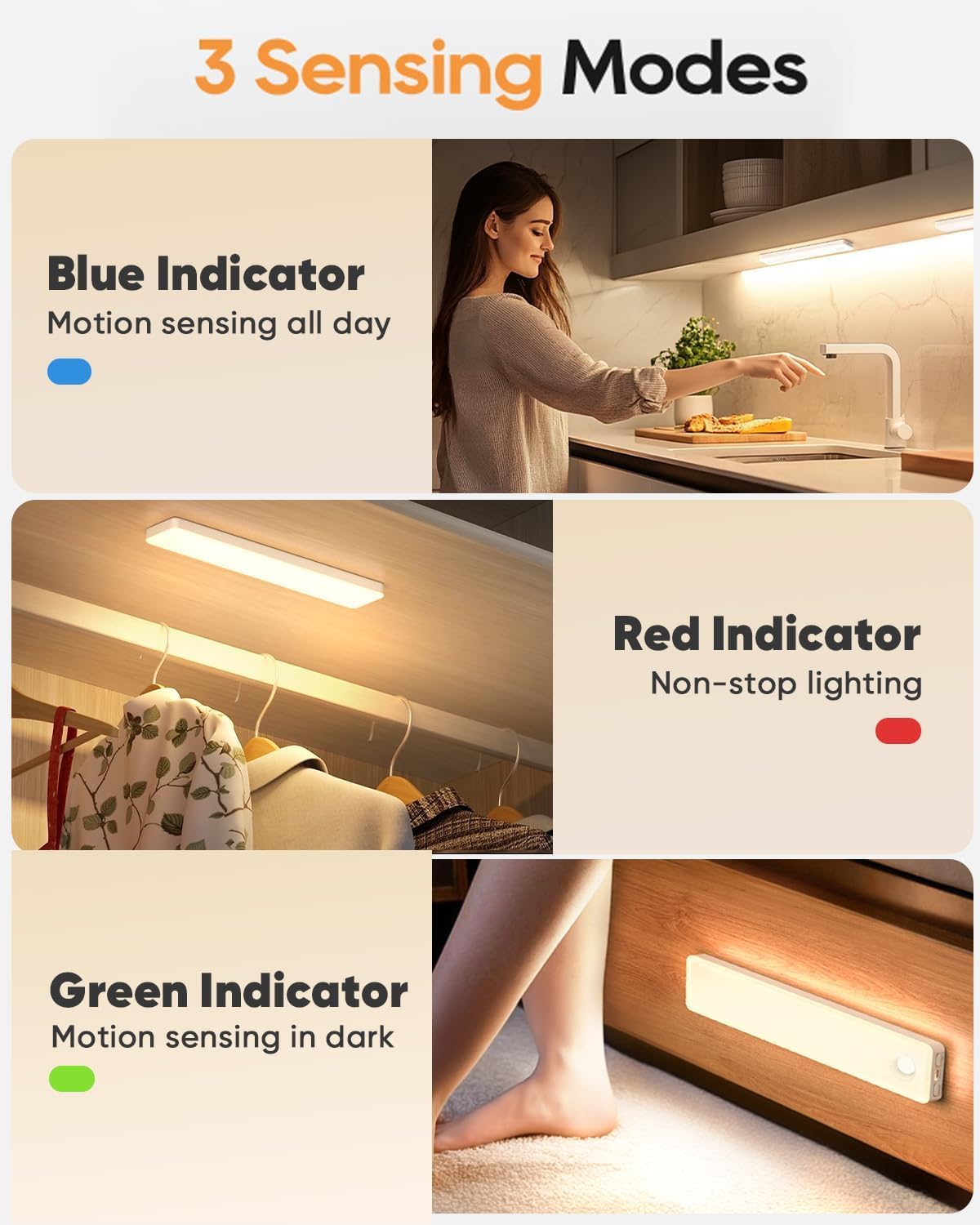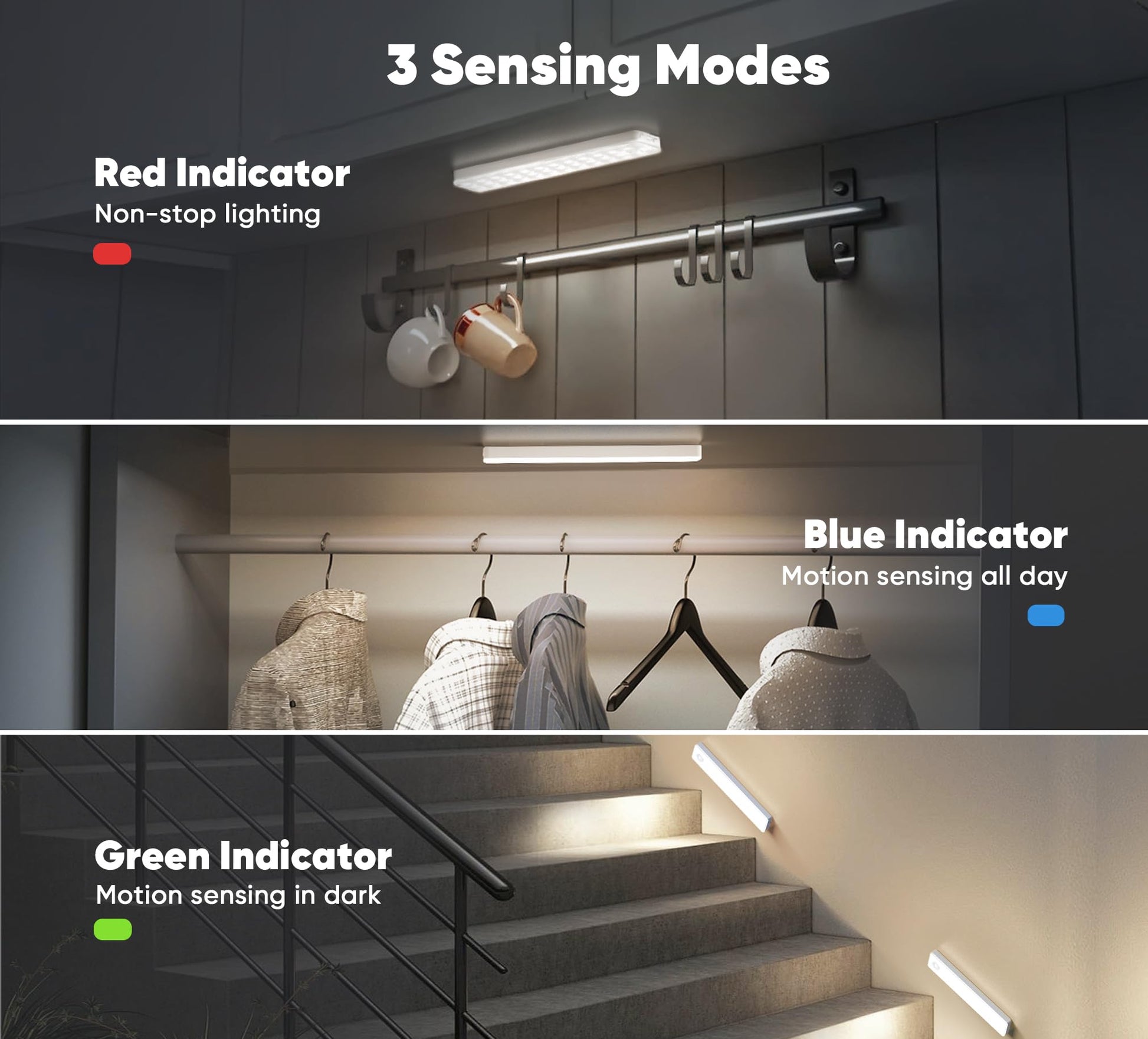 - Versatile Application: Perfect for under cabinet lighting wireless in kitchens, wardrobes, bedrooms, stairwells or hallways, enhancing every corner of your home.