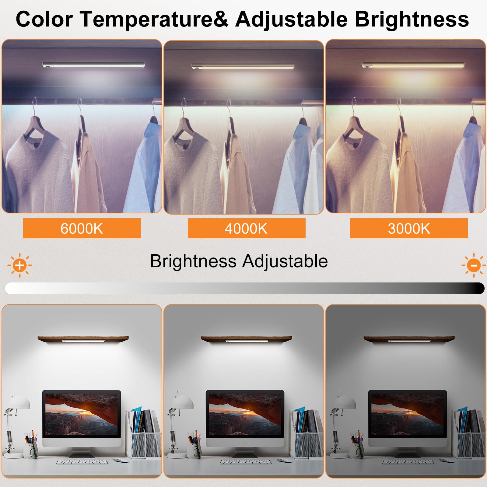 - 🔆【Stepless Dimming & 3 Color Temperatures】The under cabinet lights has has 48 high-quality LED lamp beads built in, and the upgraded light guide plate and frosted PC board make the light brighter and softer. In addition, it can not only adjust the brightness (10%-100%), but also freely switch between 3 color temperatures - 3000K/4000K/6000K, meeting the lighting needs of various scenes or atmosphere needs