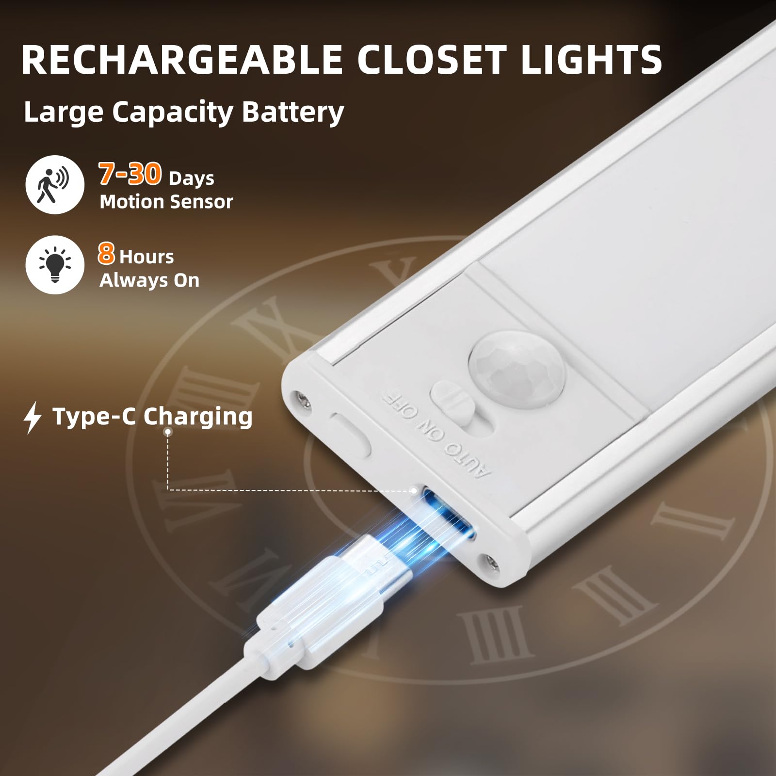 - 3 Color Temps & Dimmable: According to different usage scenarios, closet lights motion sensored provide 3 lighting color temperature options, including white light, warm light, and natural light. Moreover, under counter lights are designed with 50%-100% brightness stepless adjustment function, meeting various lighting needs.