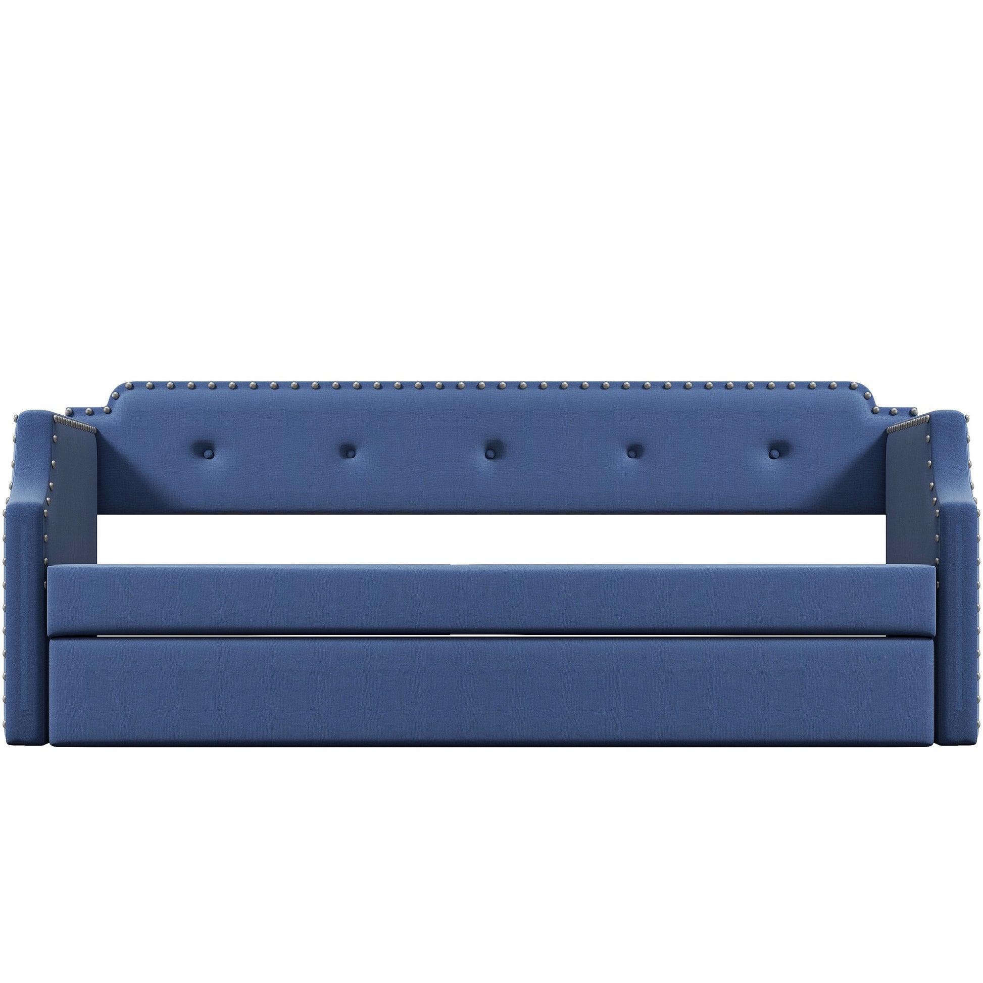 Upholstered Daybed with Trundle, Wood Slat Support,Upholstered Frame Sofa Bed Twin Blue