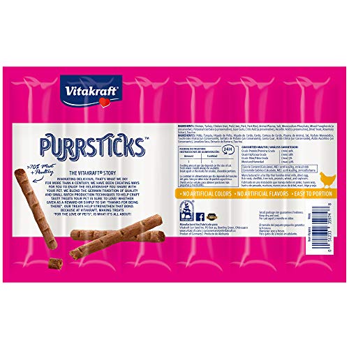Vitakraft PurrSticks Meaty Cat Sticks - Chicken - Segmented and Breakable Meatstick - Deliciously Tender