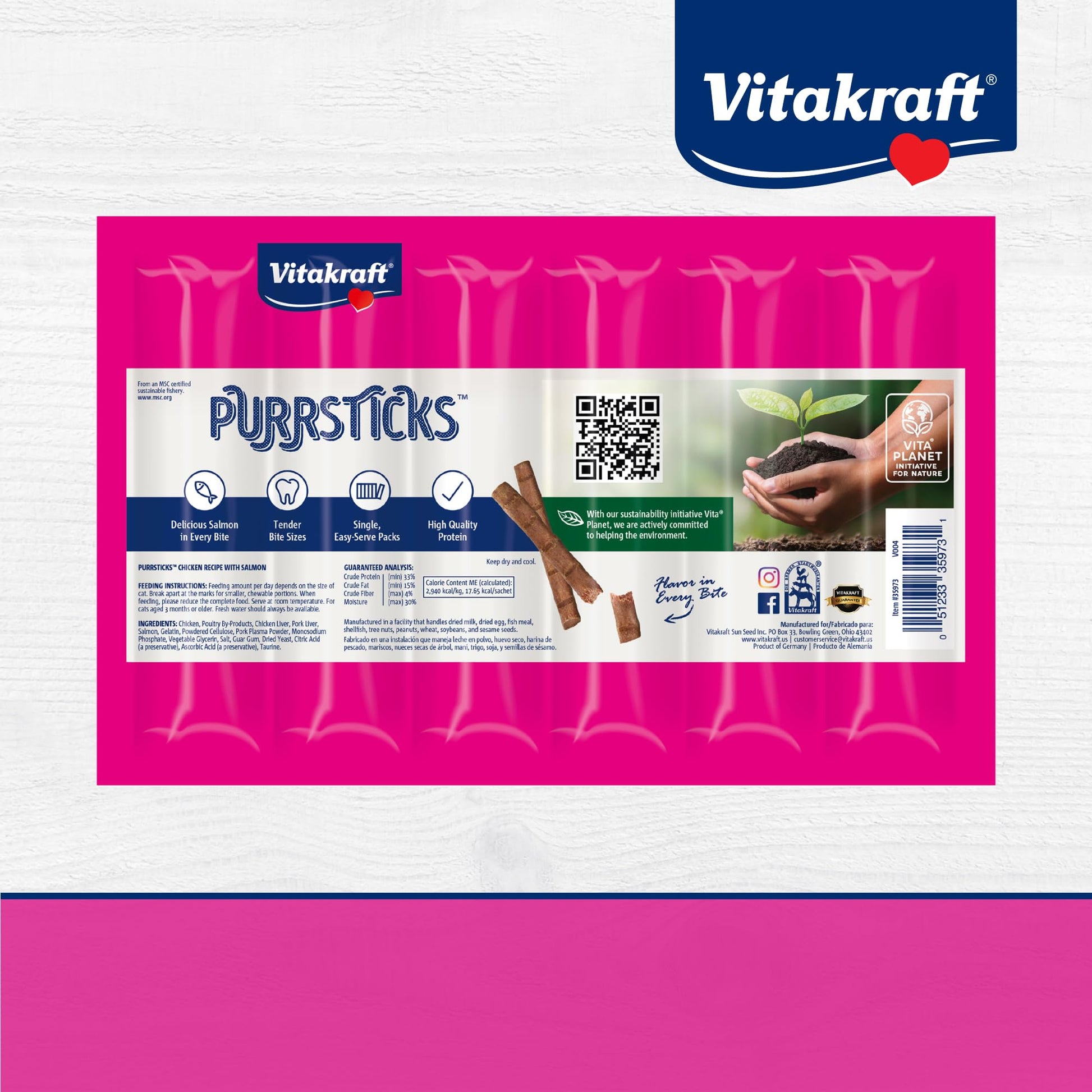 These meat treats for cats will keep your kitty purring all day long! Vitakraft Purrsticks are segmented and pre-portioned for easy treating. Loaded with premium ingredients and real meat (>70%), Purrsticks are the perfect kitty treats for snacking you can feel good about. These are great cat treats for indoor cats for games of treat toss, or if you're on the go, throw them in your bag for travel or even a vet visit. Your cat is sure to crave sticks all day long, and we know snacks like these will satisfy your kitty.
