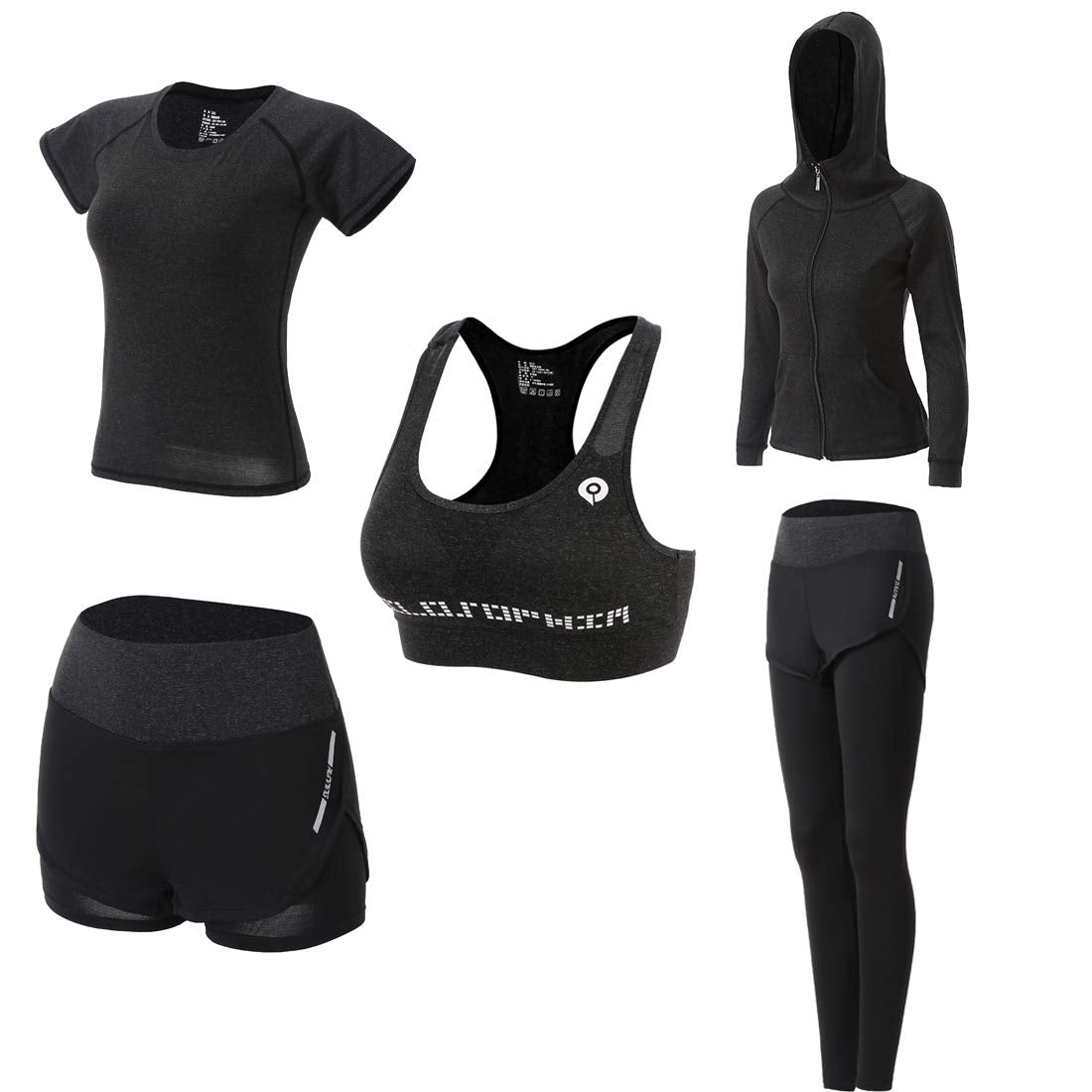 JULY'S SONG 5PCS Workout Set for Women Yoga Exercise Clothes Running Tracksuit Set