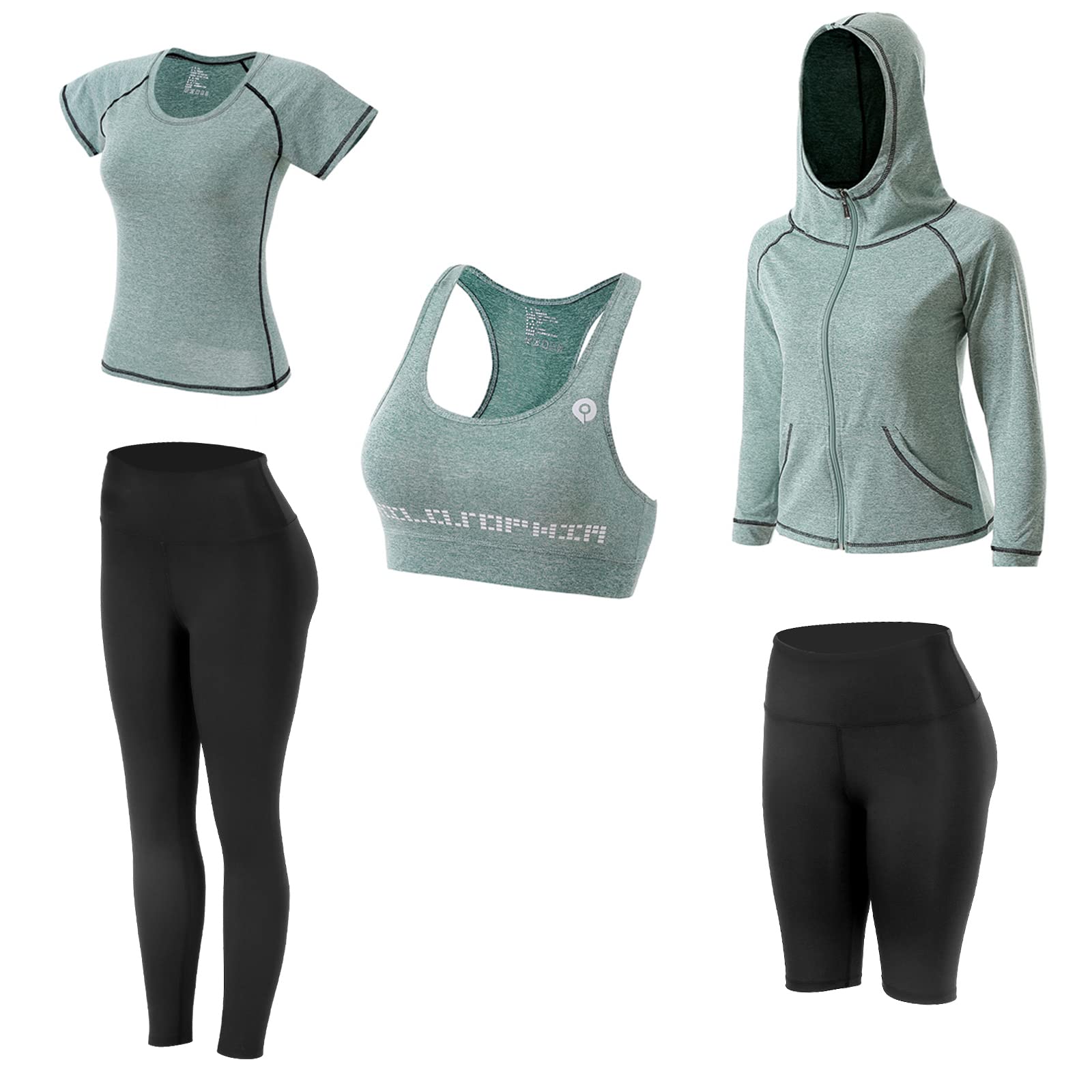 Women Workout Clothes Set 5 PCS Exercise Athletic Outfits Set